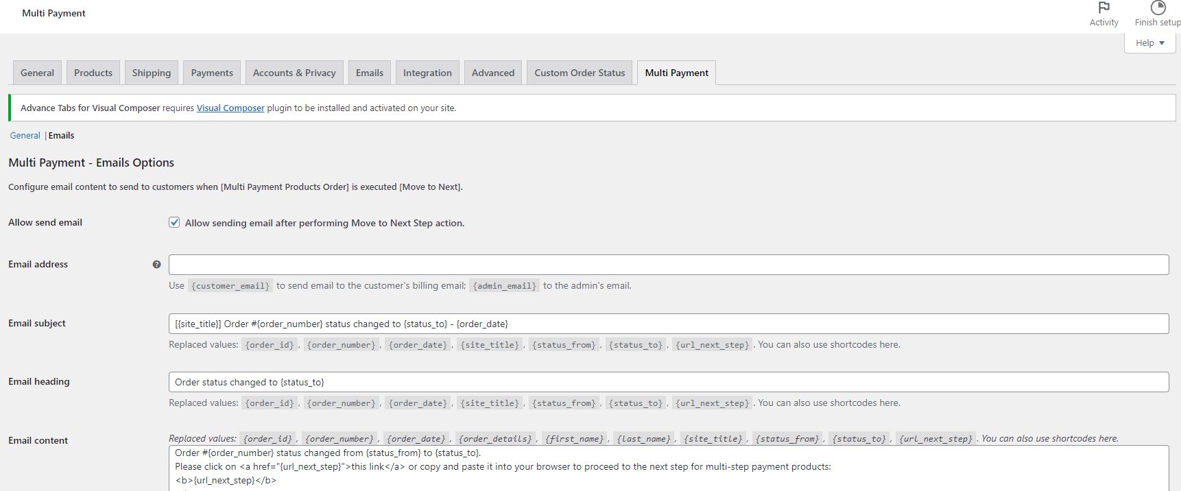 You can configure the basic parameters for the Multi Payment Product plugin to work in the [Multi Payment] tab in woo’s settings.