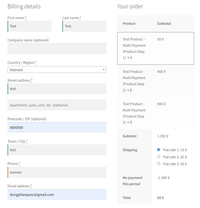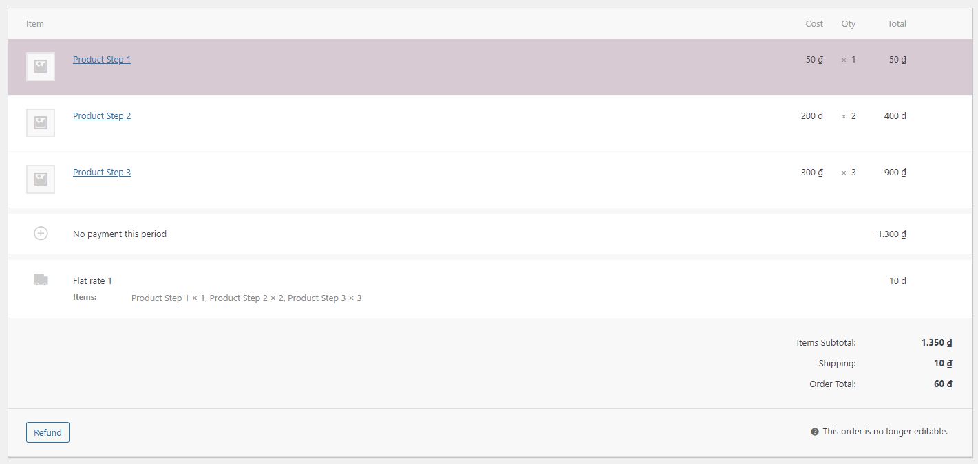 - When the customer clicks on this URL, the system will automatically create a new order, including products such as the first order [Step 1, Step 2, Step 3] and direct the customer to the payment page. In this order, the customer only has to pay for the product [Step 2].