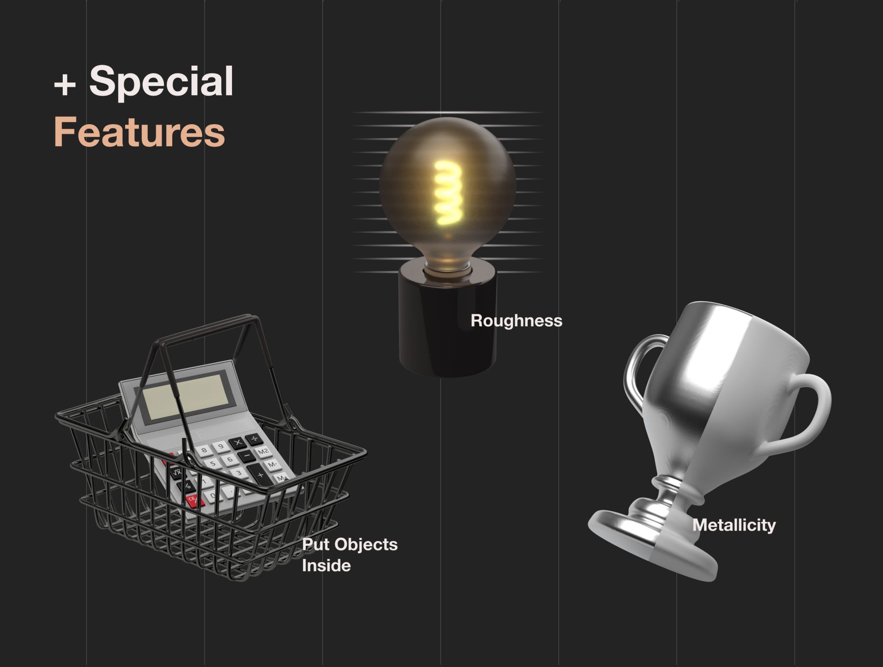 The pack includes 30 easily customizable volumetric icons and Cinema 4D scenes.