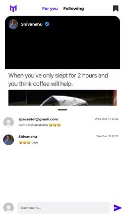 Memester is a Memes & Vines Funny Video Video social networking app that supports Android & iOS, and made using React Native, Expo, Firebase & Admob. User can post Vines & Memes with #hashtag & @mentions. User Can like, share, comment on post. User can record video with in built camera with songs by choosing any songs, can snap images, apply filter to camera, flash light, switch between camera and much more. User can create profiles, follow other porfiles, private chat, send posts & files in chat (Image, video) User can earn money by posting content which he/she can withdraw any time. User can request for blue tick verification, delete profile, seach, trending posts & songs, discover songs, Web Admin panel and much more. For more info about the app scroll down.