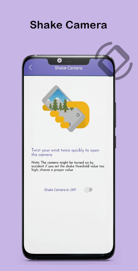 With shake camera you can shake your mobile phone to access easily to the camera.