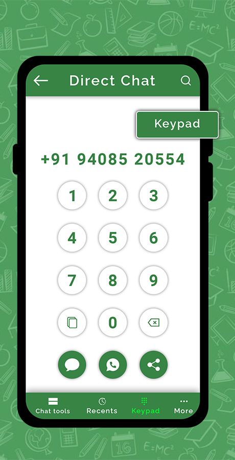 Open chat for WhatsApp without saving the number in contacts. Direct chat to anyone even yourself in WhatsApp or WhatsApp Business. Also you can create link for WhatsApp and share.