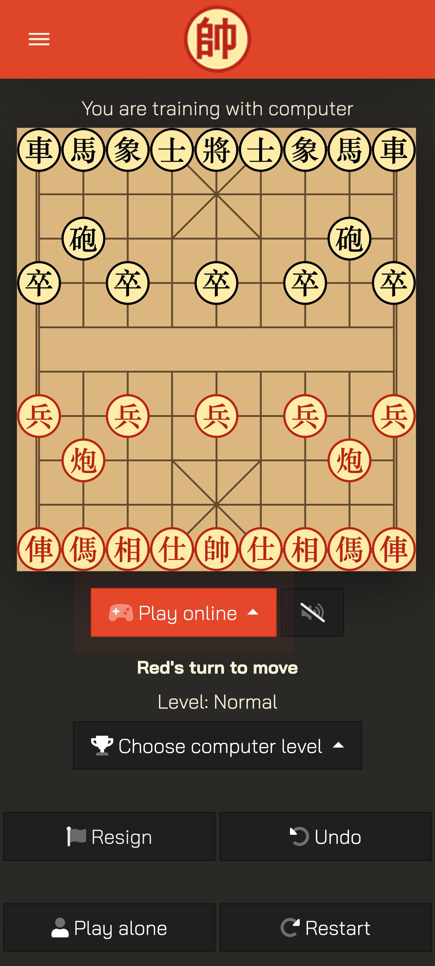 - Play in room: Players press on the button "Play now", host a new room with random Room code, and create a password for you and your friend, also capable of Inviting friend to play by sending the link. Players can also access the page "Rooms" to enter a hosted room. Players can choose Red Side or Black Side, Red moves first.