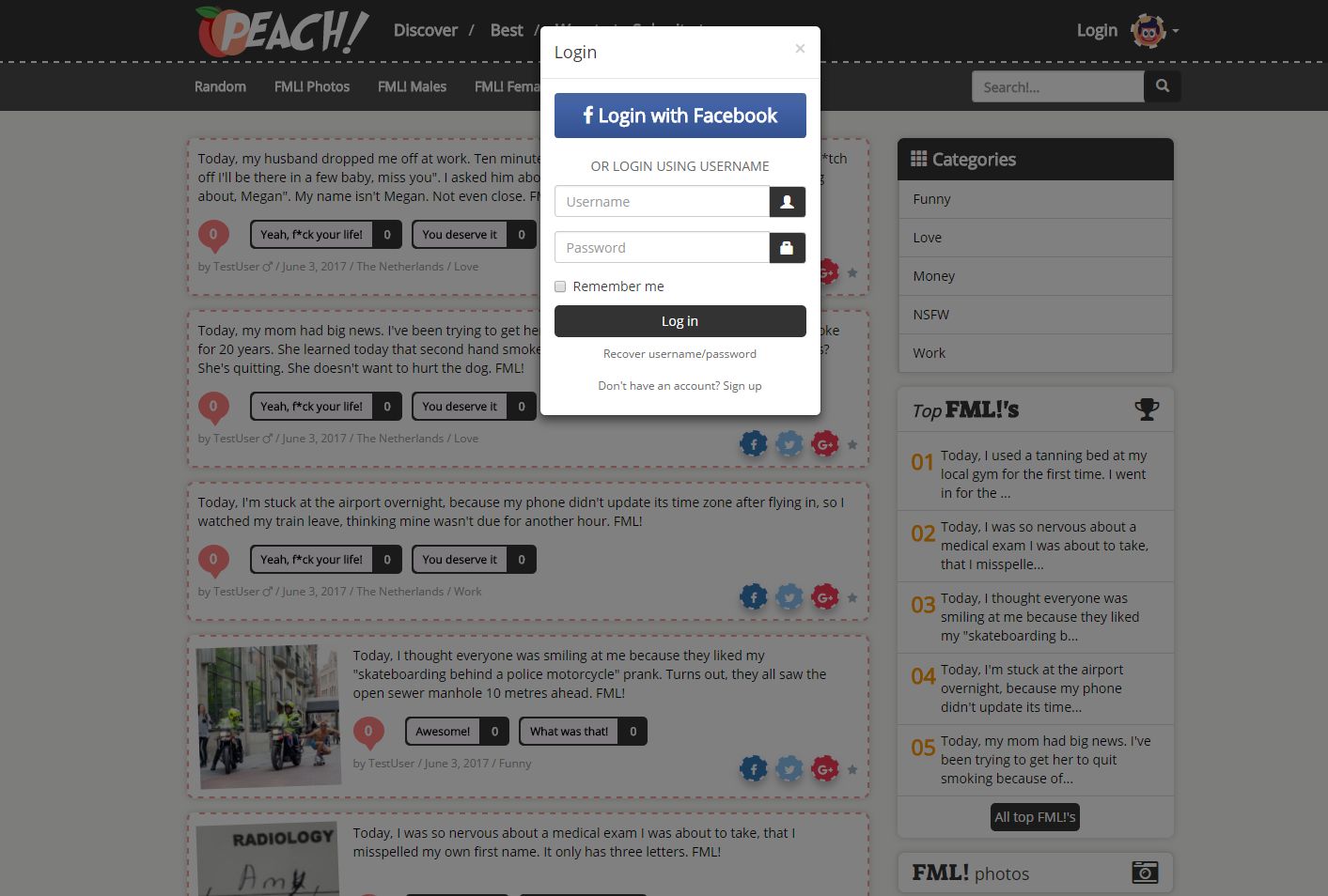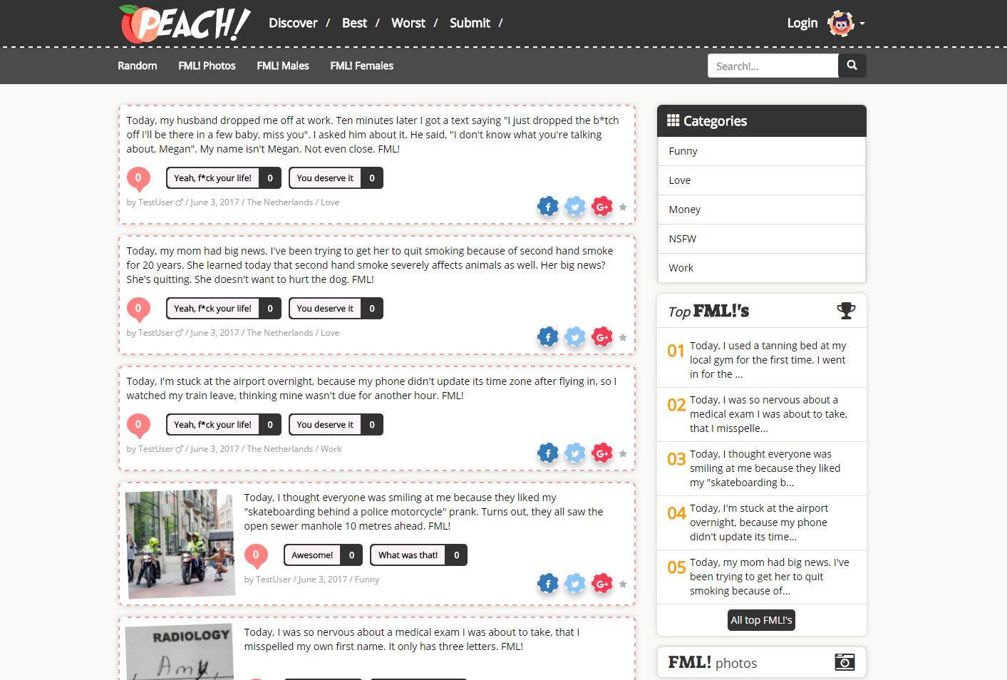Peach stories is a website just like like FMYLIFE.