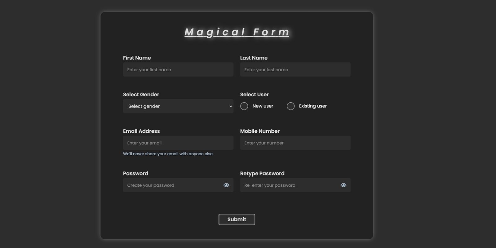 | Tags | jquery, form, validation, responsive form, bootstrap 5, magical form, unique form, dark theme form, bootstrap 5 form |
