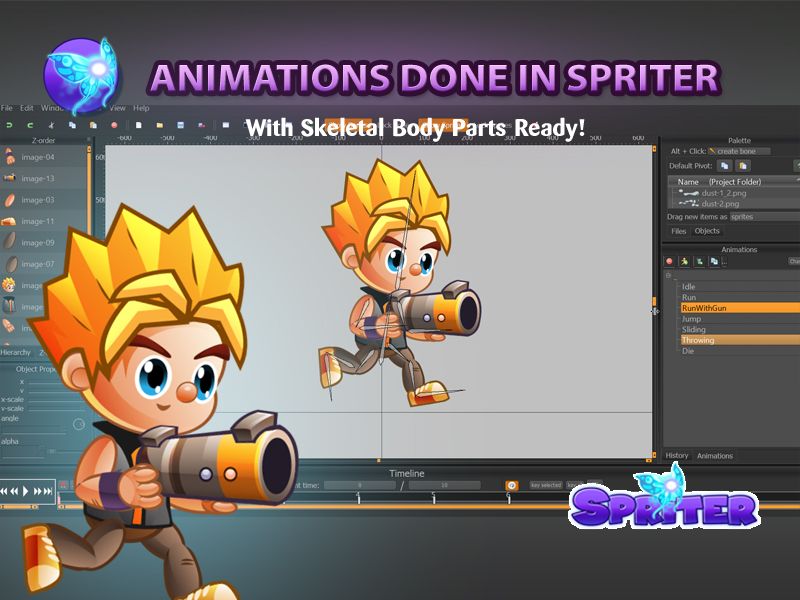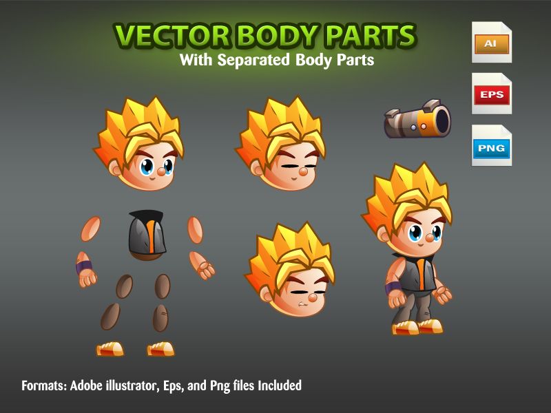 Note: The .AI and .EPS files just contain vector body parts because the animations themselves are done in Spriter.