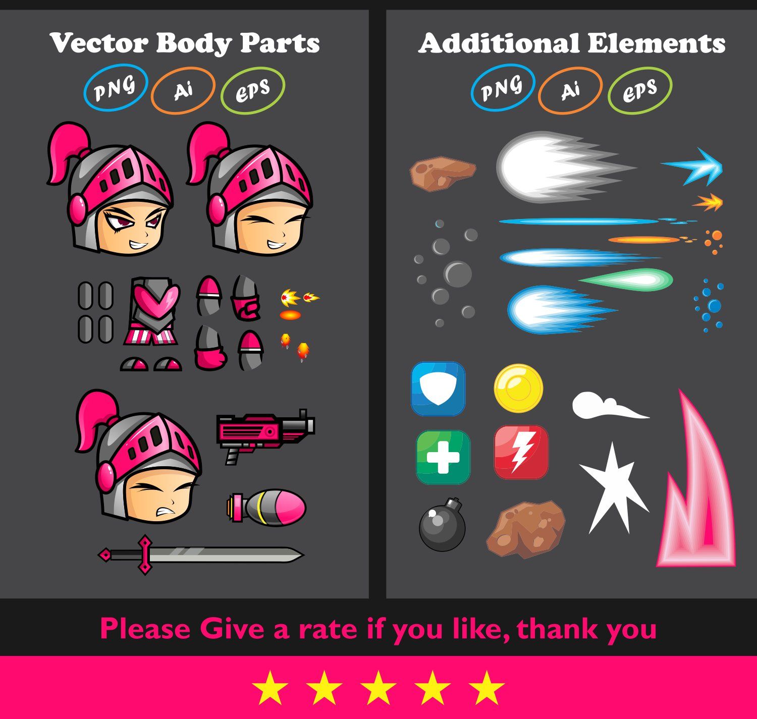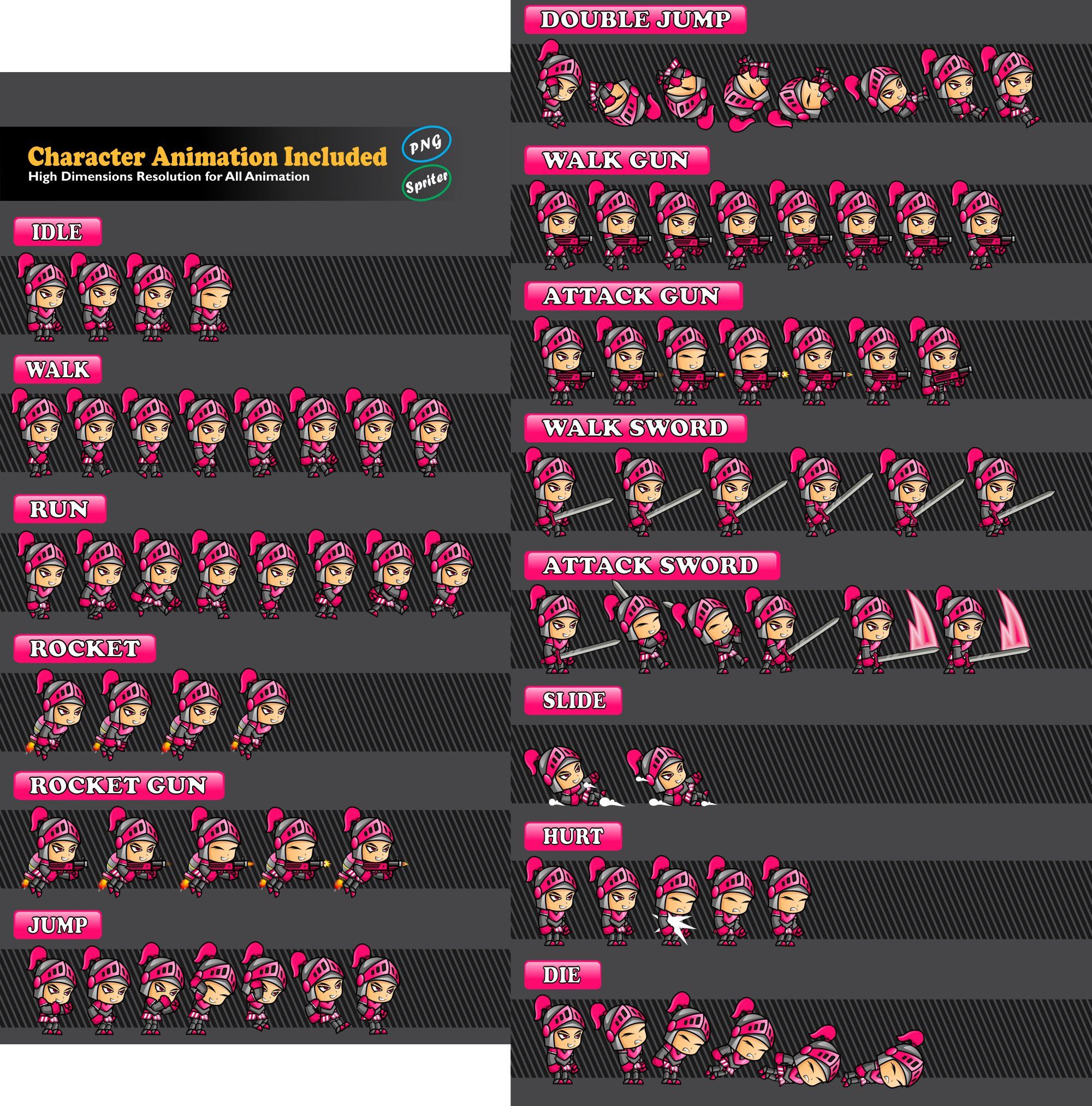 | Tags | android, mobile, iOS, game, iPhone, modern, animation, 2d, vector, space, Cartoon, Action, cute, run, assets, game characters, charcter sprites, main character, character, running games, fighting, platform, rpg, side scroller, sprite sheet, pink, KNIGHT, sci-fi |