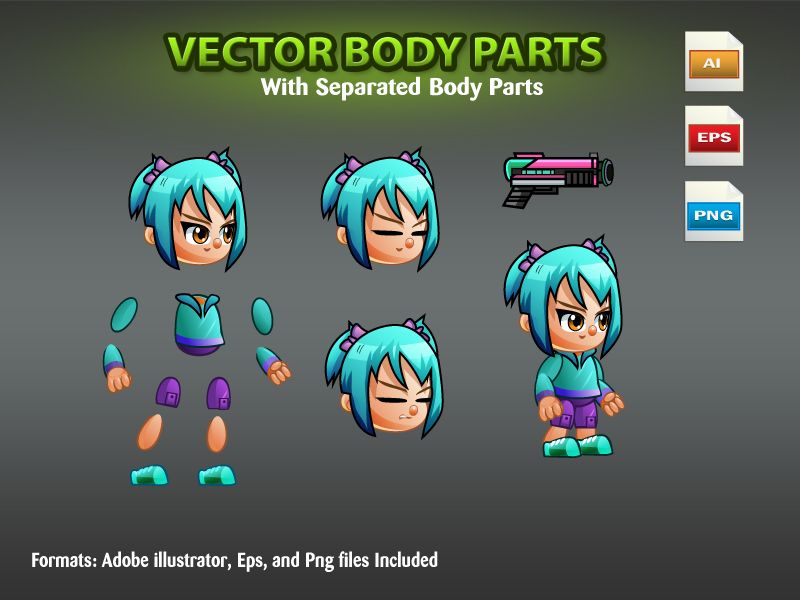 Note: The .AI and .EPS files just contain vector body parts because the animations themselves are done in Spriter.