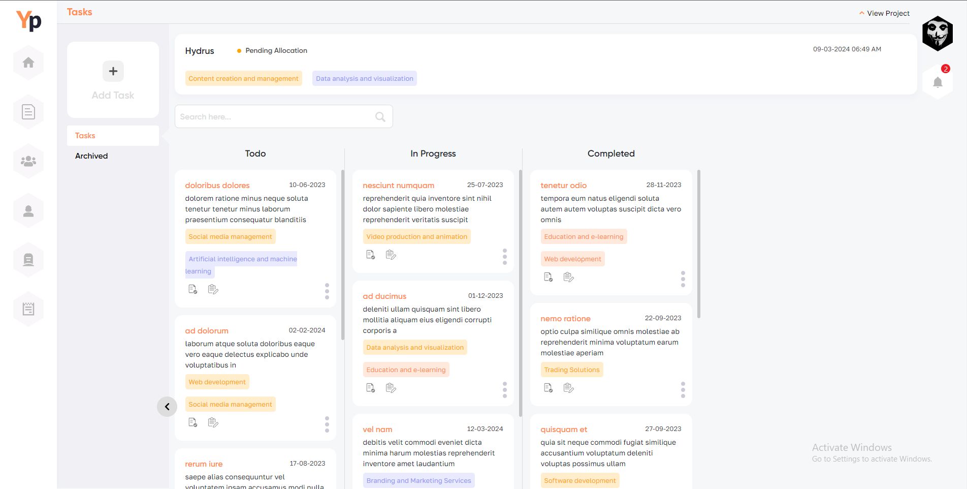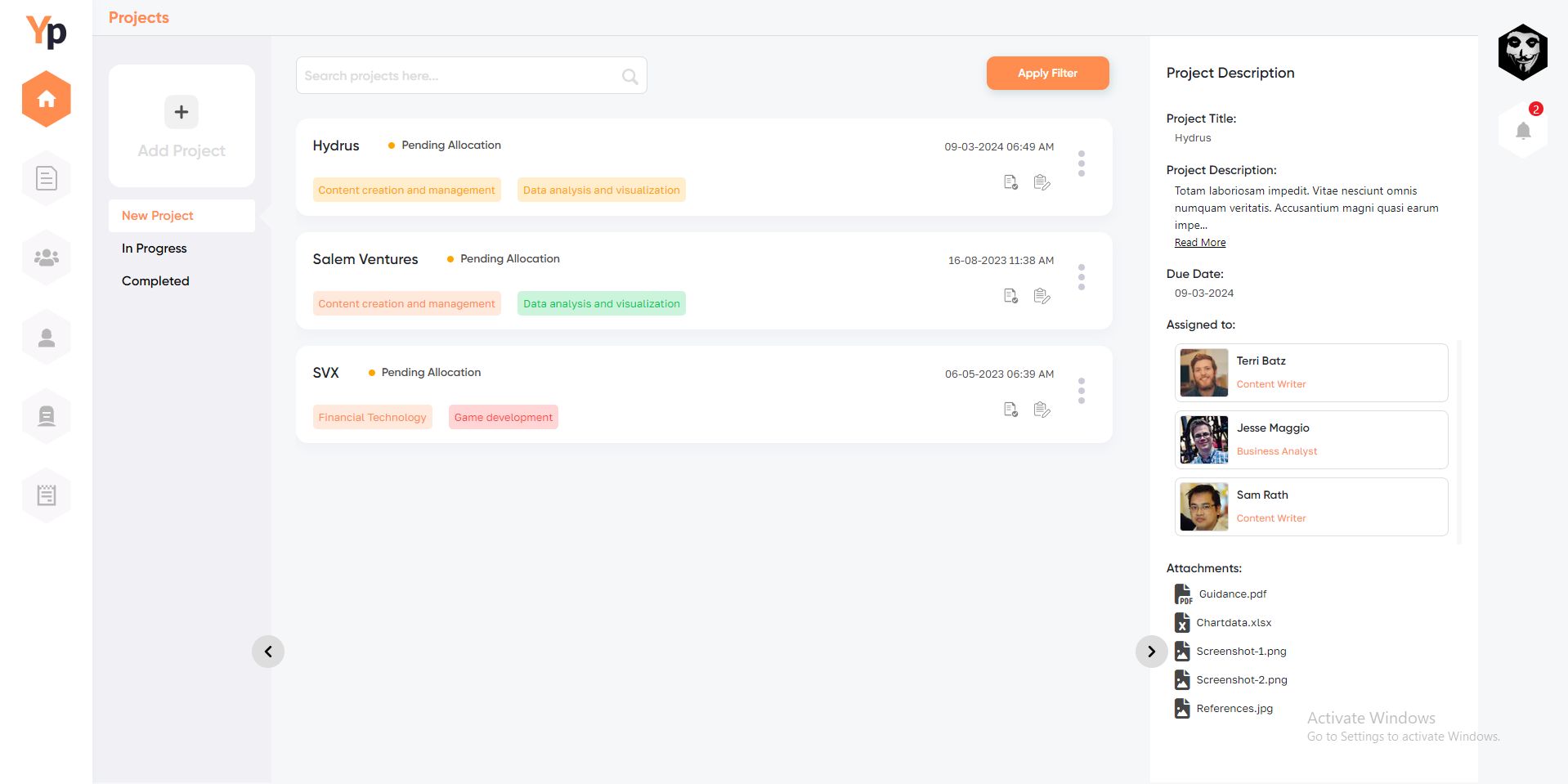 Your Promate is a static robust project management app designed to help businesses and organizations manage their projects efficiently. With a user-friendly interface, it offers a range of features that help teams collaborate effectively and stay on top of their project goals.