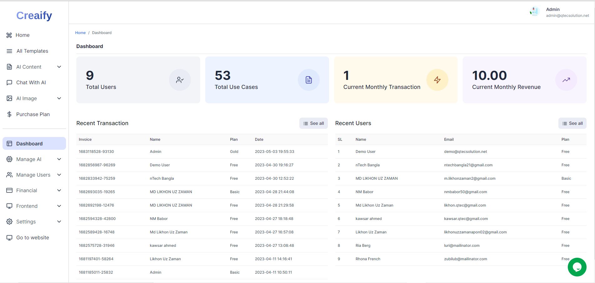 OPENAI DALL-E. CreAiFy has a rich admin panel that allows you to create templates, set pricing packages, see revenues, integrate payment options, and configure OPENAI accounts. CreAiFy is built on PHP Laravel, very easy to install and a perfect script to start your SAAS business within budget and short time.