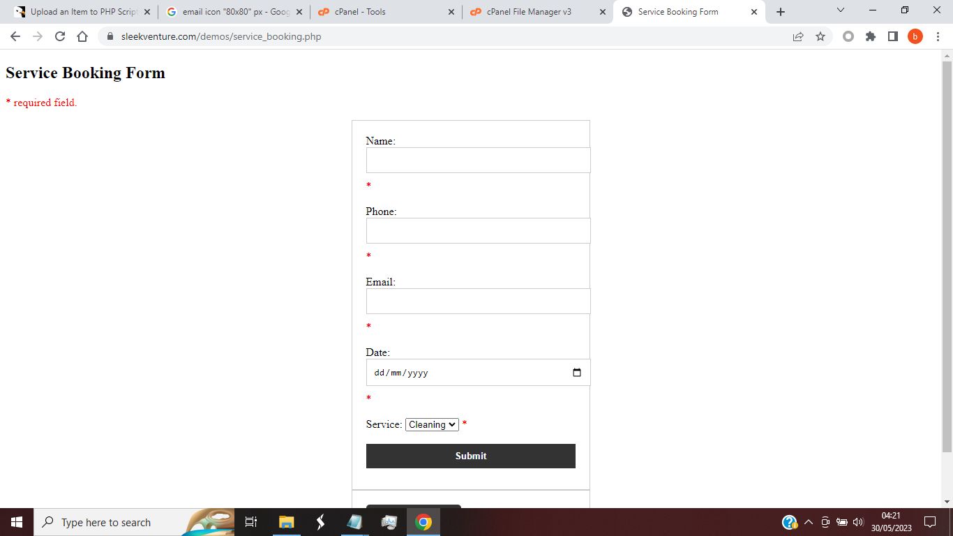PHP Service Booking Form with Validation and Autoresponder is an easy-to-use web application that helps customers to book appointments, schedule meetings, and reserve services online. The booking form is built using PHP and features a user-friendly interface that simplifies the booking process for customers.