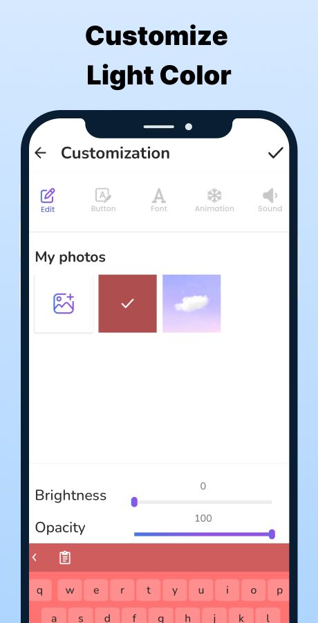 - Customize keyboard background: To create a beautiful and personalized keyboard interface, the theme keyboard app provides make your own keyboard background. Users can choose their favorite wallpaper or upload from the library, and adjust the blur or brightness to create a unique keyboard interface.