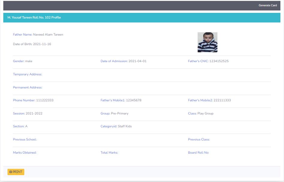 Captures and maintains student records, including personal details, academic performance, attendance, and disciplinary history. It allows easy access to individual student profiles for teachers, administrators, and parents.