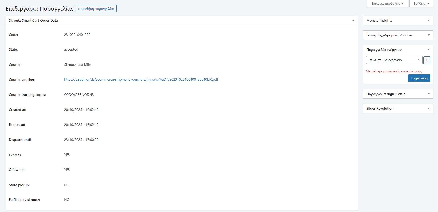 The ability to automatically generate and print vouchers for couriers simplifies the shipping process, enhancing order fulfillment speed and accuracy. Additionally, the plugin facilitates comprehensive statistical tracking, offering insights into both WooCommerce and Skroutz platform orders. This feature empowers businesses with valuable data for informed decision-making, helping optimize marketing strategies, stock levels, and overall operational efficiency.