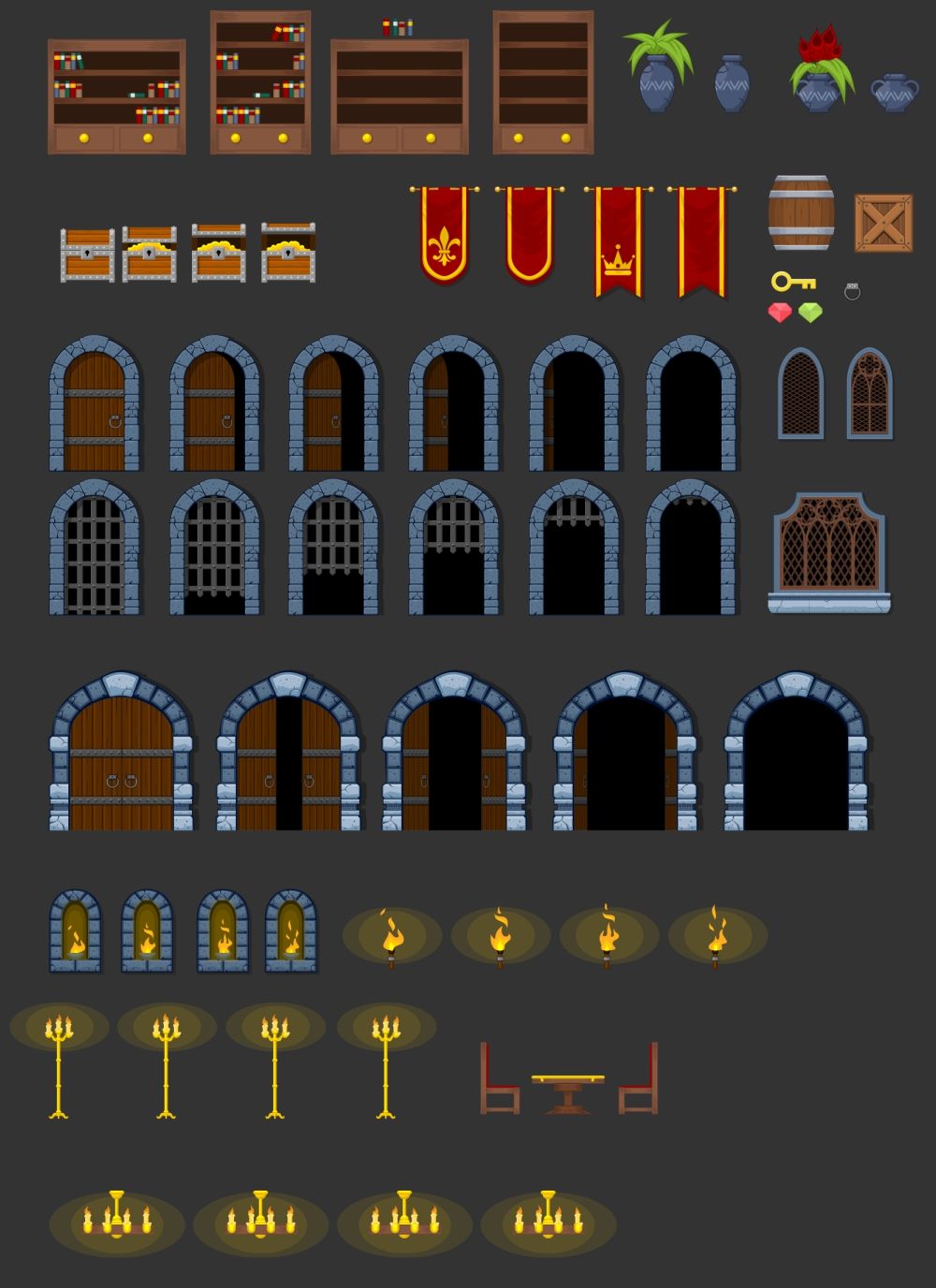 Tile Set suitable for platformer games with medieval, adventure, fantasy, rpg, kingdom, castle, dungeon, and other similar theme.The Castle - Platformer Tile Set