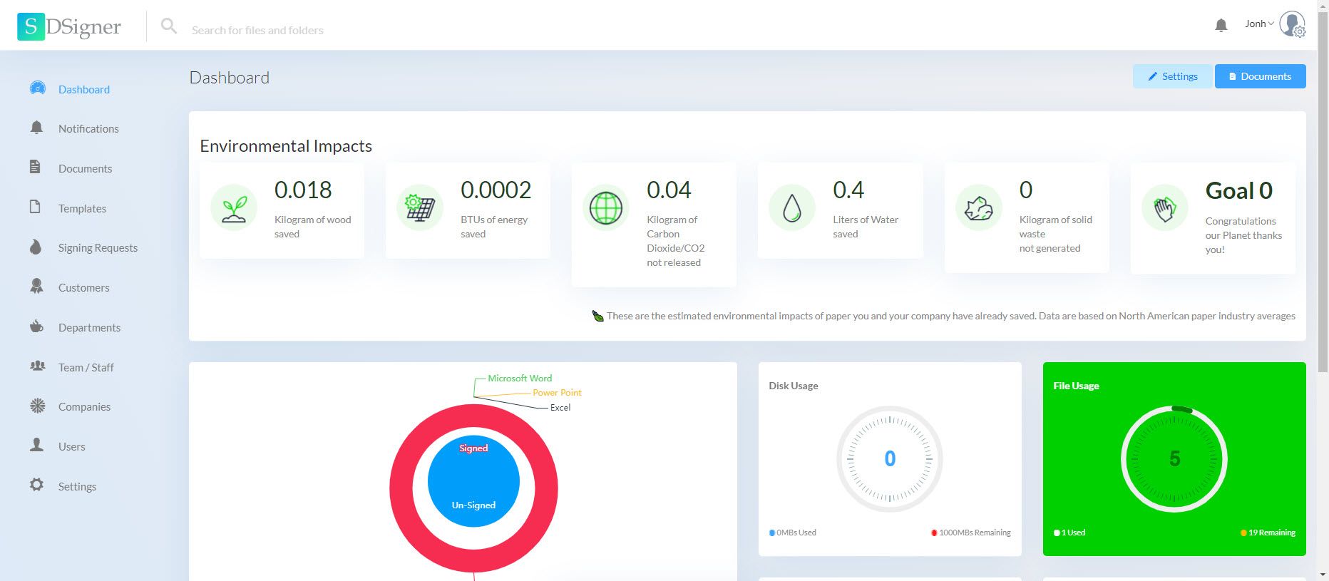 Disk usage and file usage limits: Monitor you files and disk usage from your dashboard. For those buyers who use signer for commercial purpose this feature comes in handy when billing your clients.