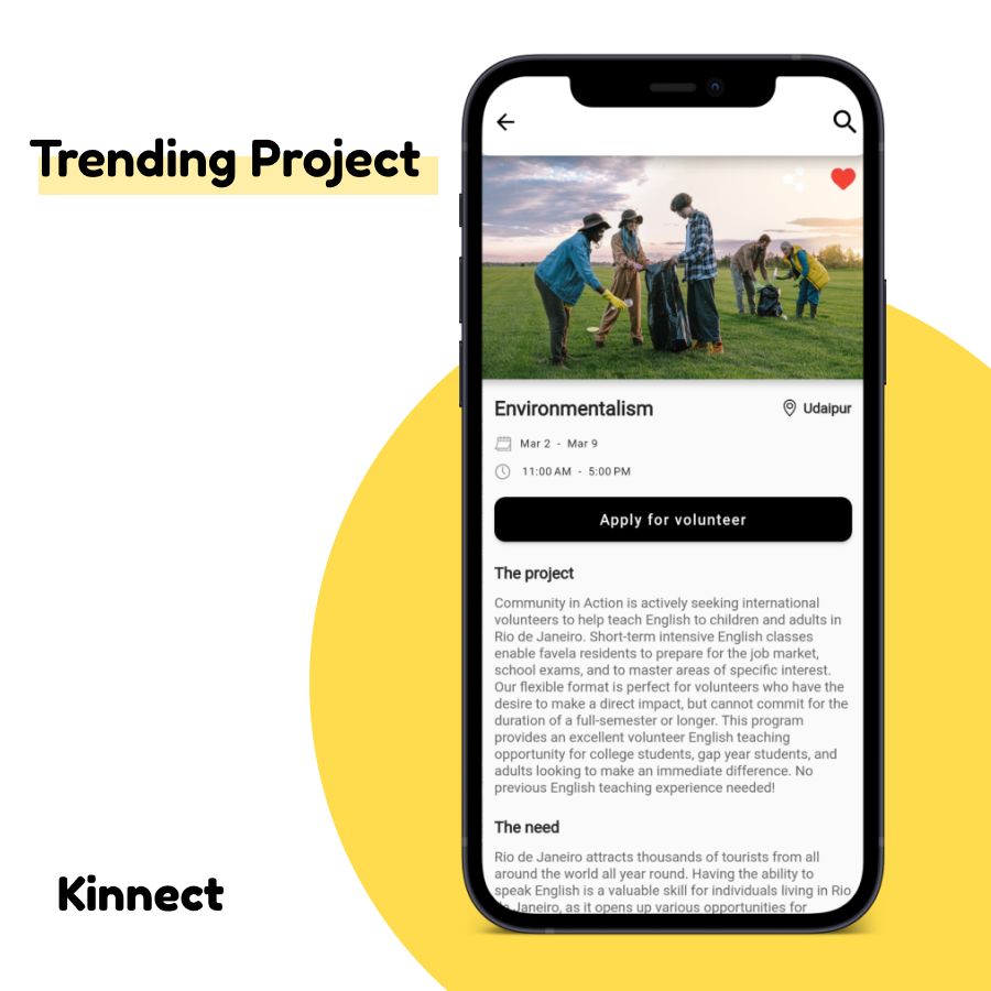 | Tags | environment, project management, flutter, event calendar, user-friendly, social impact, volunteering, project-matching, skill-building, volunteer platform, kinnect, mobile-app, collaboration app, collaborative volunteering |