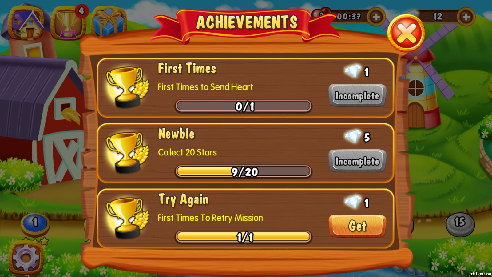 - Heart counting system will make every try counted! Each time you play it will cost you 1 heart! You can use diamond to refill your hearts.