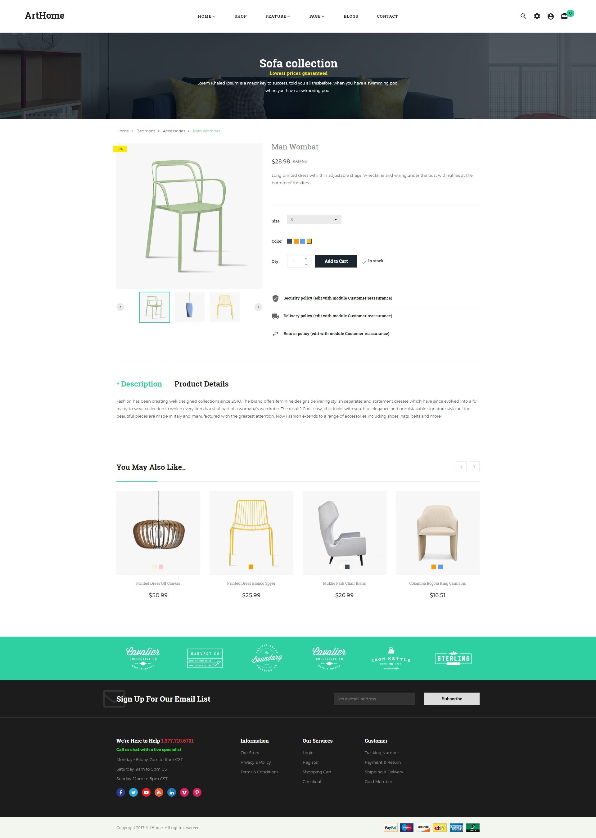 Arthome - a Prestashop Furniture Theme -is designed especially for Furniture online shop or office Furniture goods.