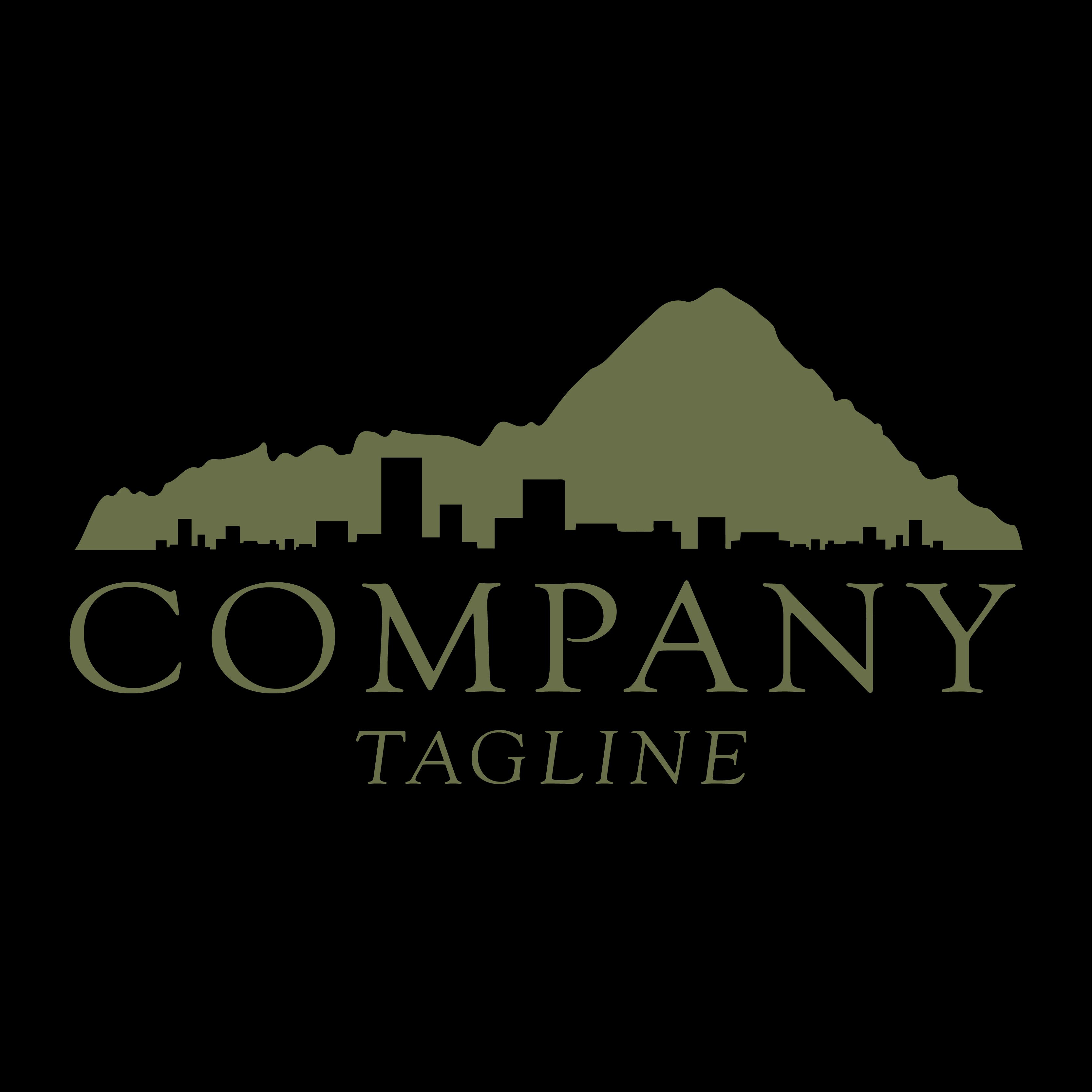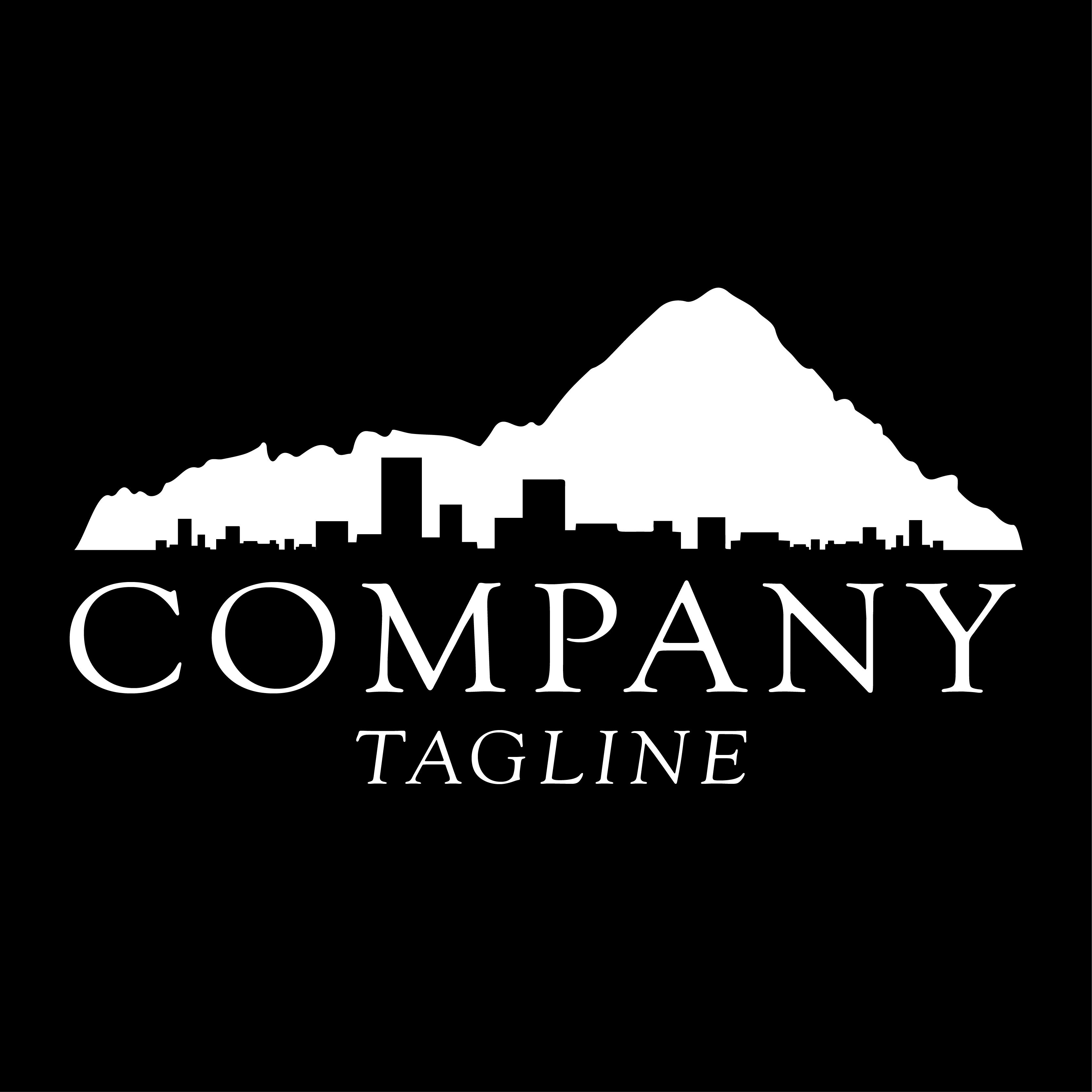 The logo features an imposing hill above the silhouette of a city.City and Hills - Logo Template