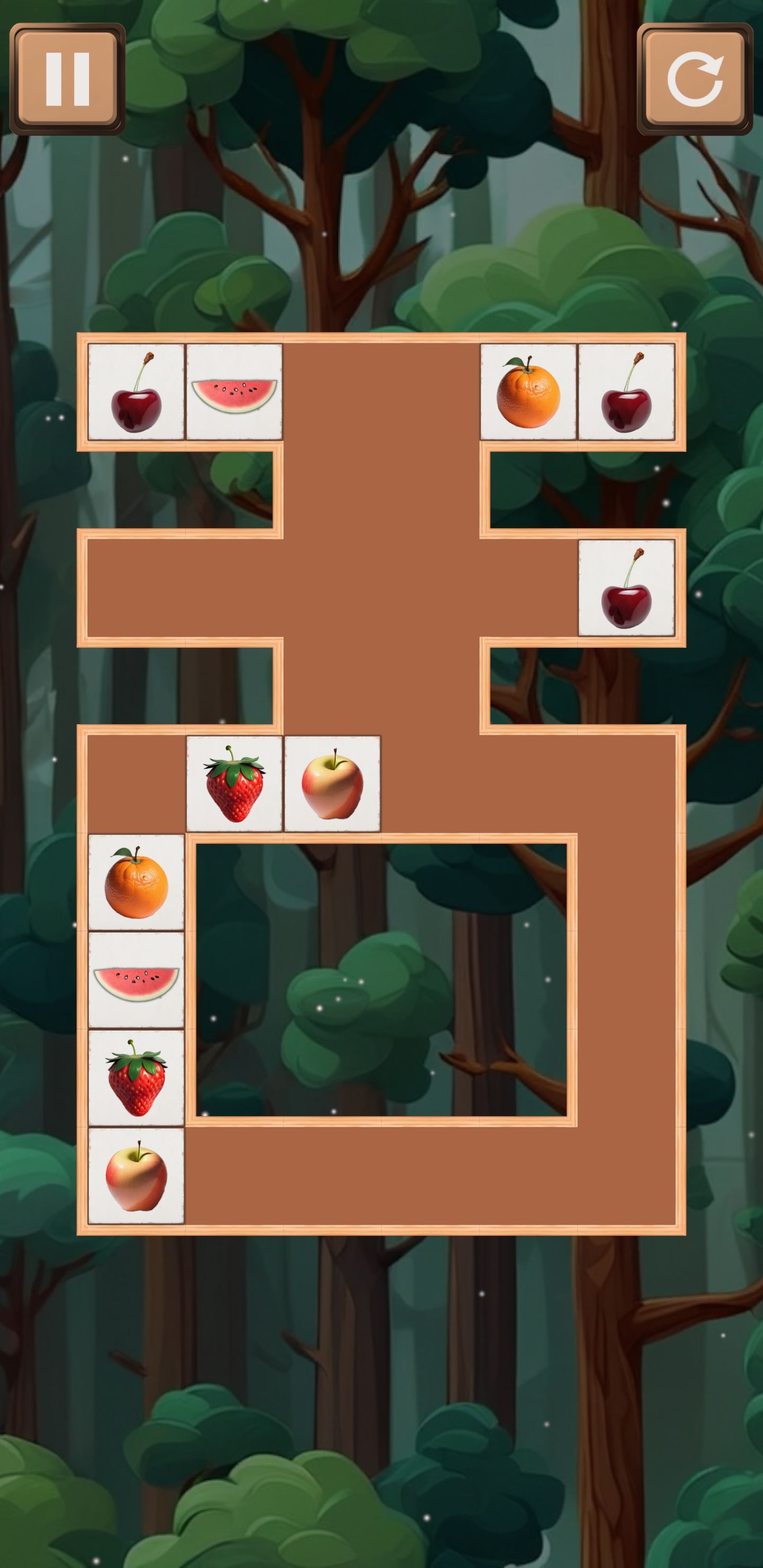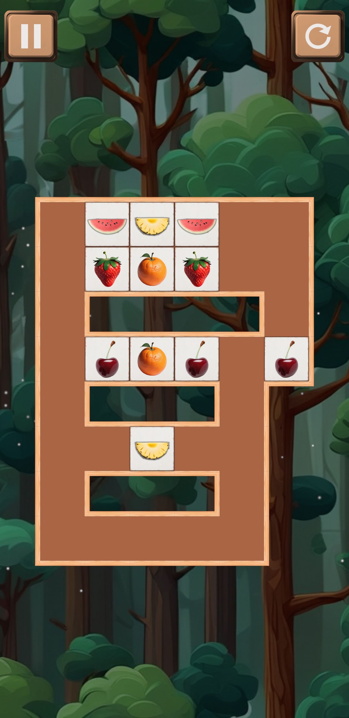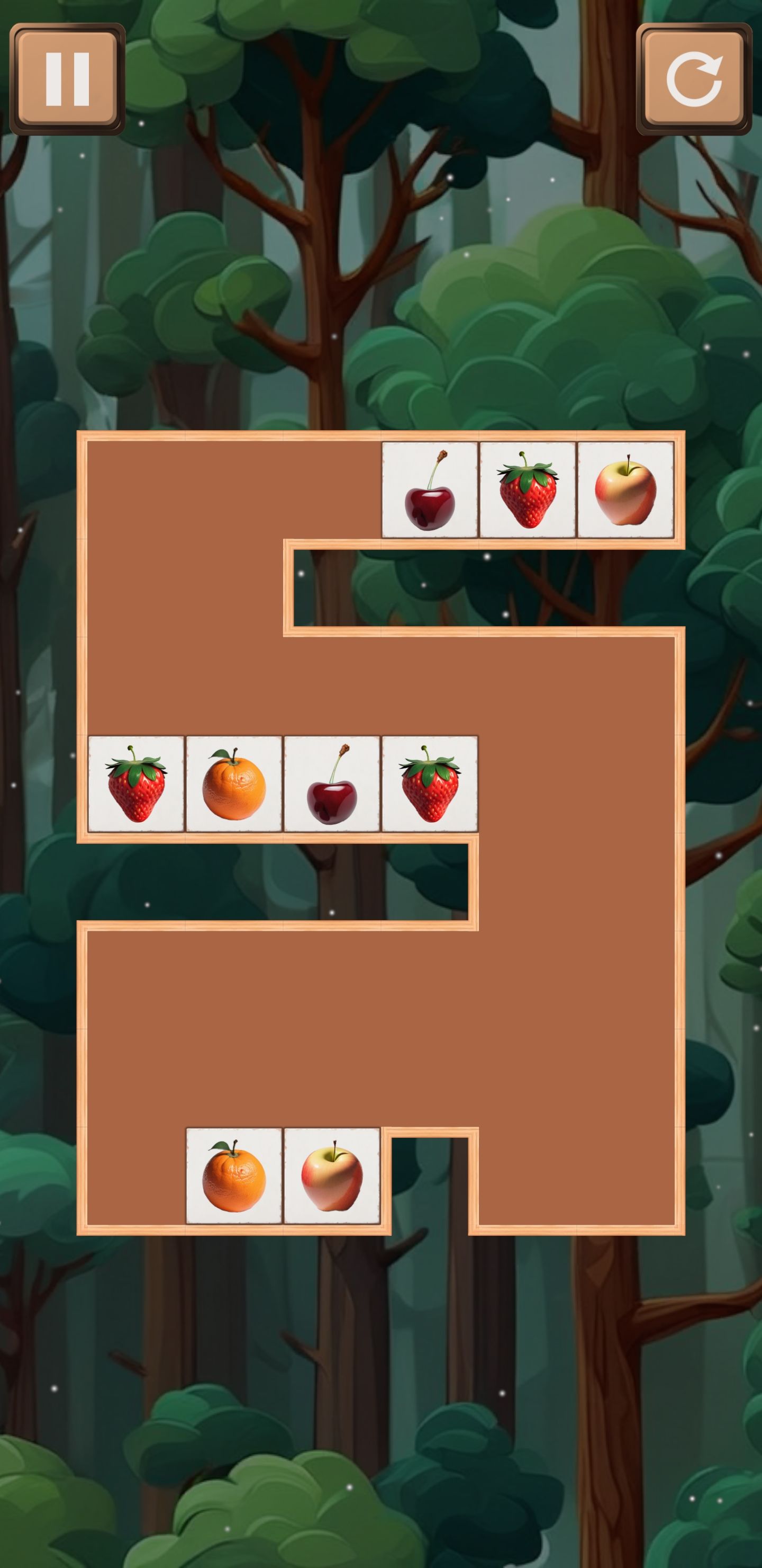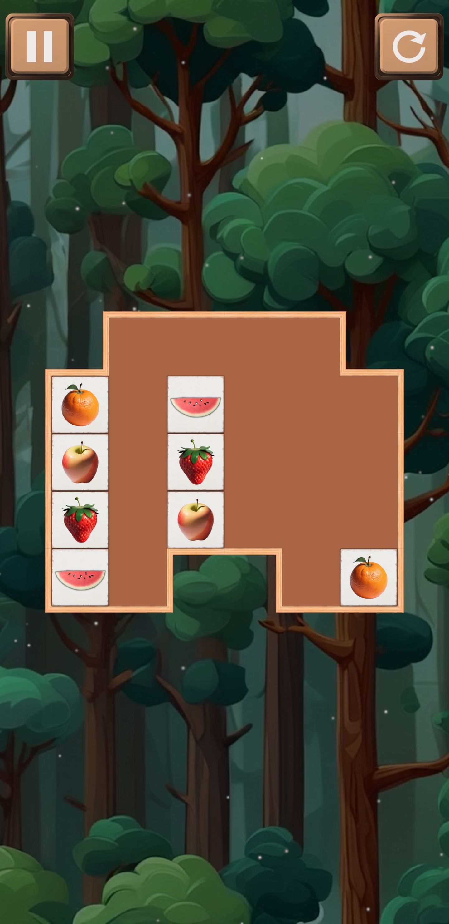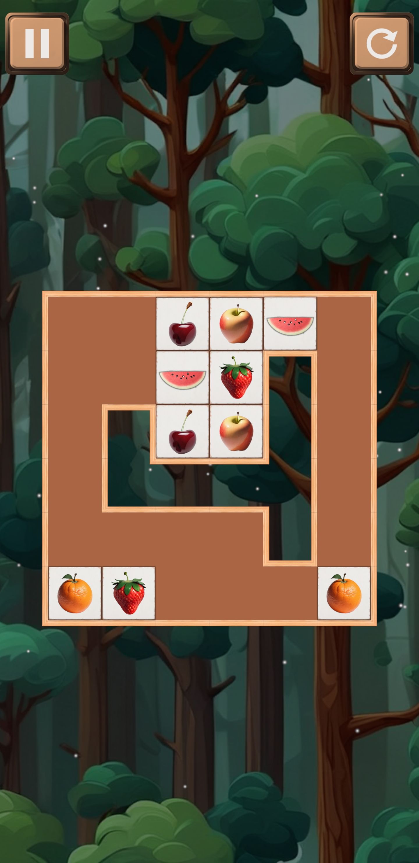 Fruit Tile Match is a tile-matching puzzle video game. The objective is to clear the grid by matching blocks of the same type, which causes them to disappear. However, unlike traditional match-three games, blocks can only be moved horizontally or vertically, and they continue moving until they encounter an obstacle. This adds a strategic element as players must carefully plan their moves to create matches while avoiding getting stuck.