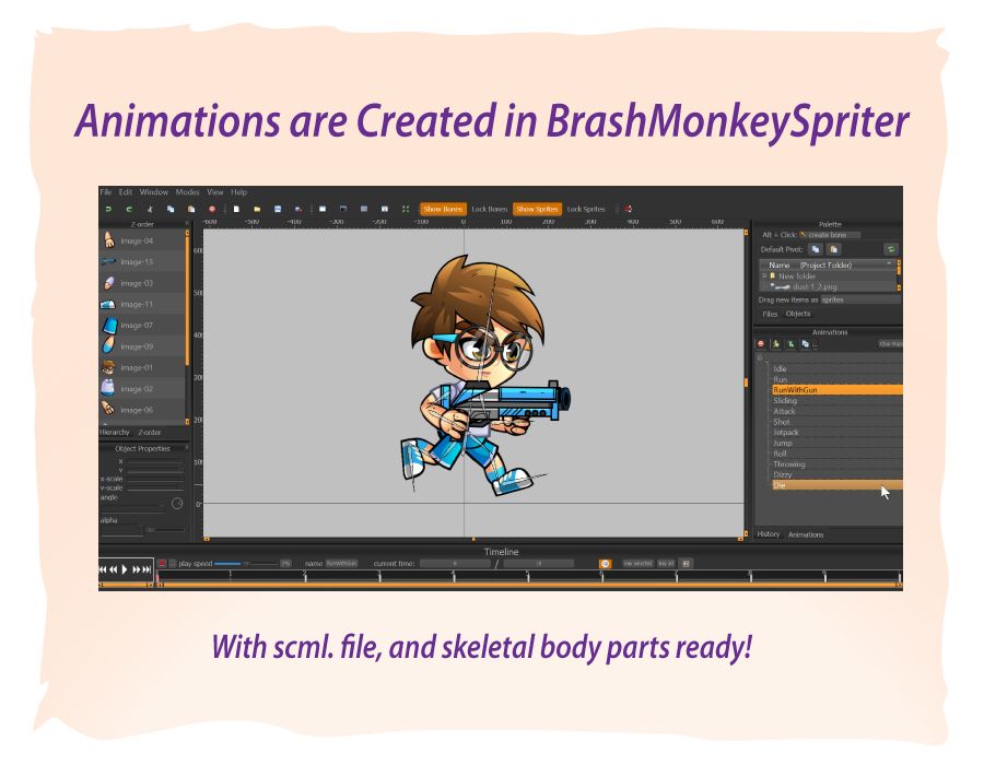 Note: The .AI and .EPS files just contain vector body parts because the animations themselves are done in Spriter.