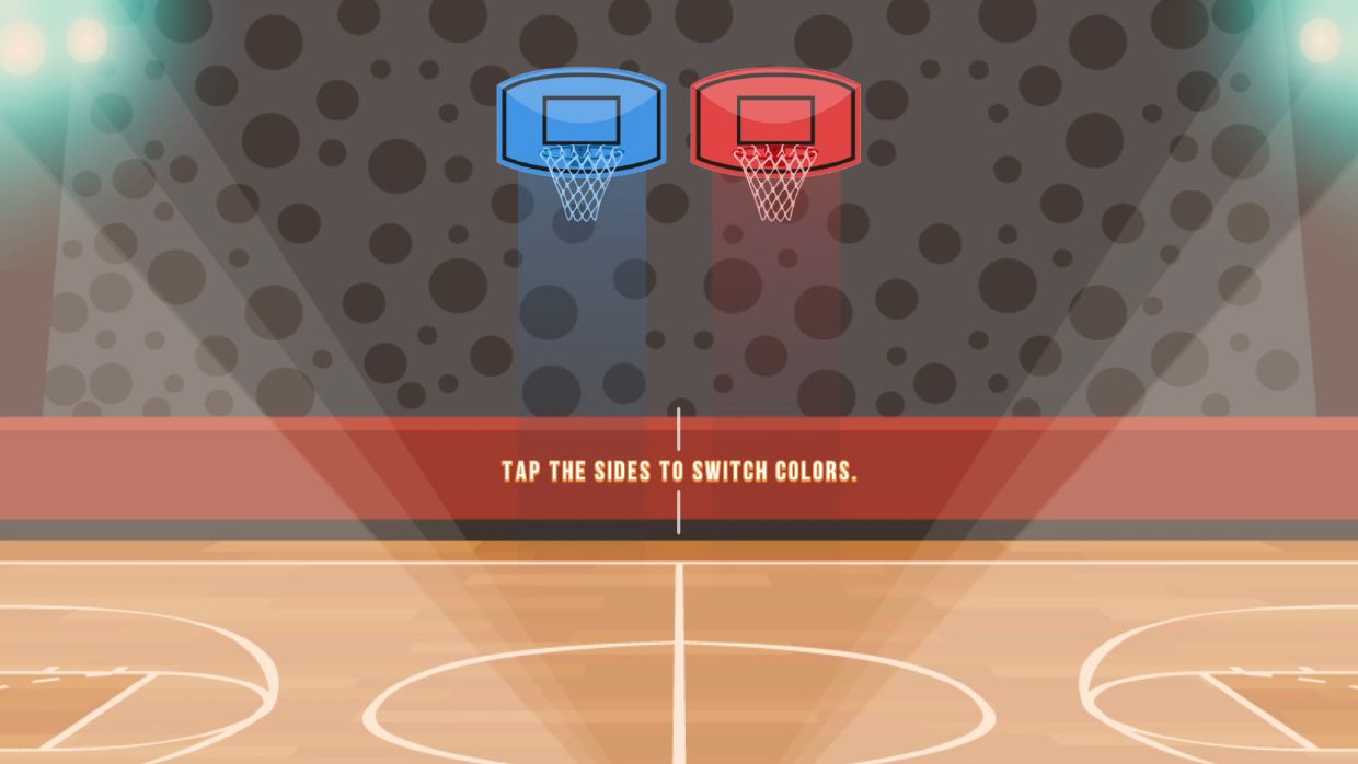 Hyper-casual basketball game with one-touch color-matching hoops for addictive fun.