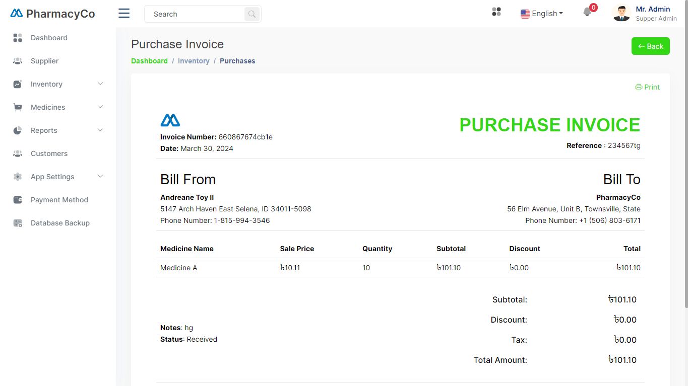 Our Pharmacy Management System is an all-in-one solution designed to streamline and enhance the daily operations of your pharmacy. This robust software comes packed with features that make managing sales, purchases, stock, and prescriptions a breeze. Whether you're a small independent pharmacy or part of a larger chain, this system is built to handle your needs efficiently and effectively.