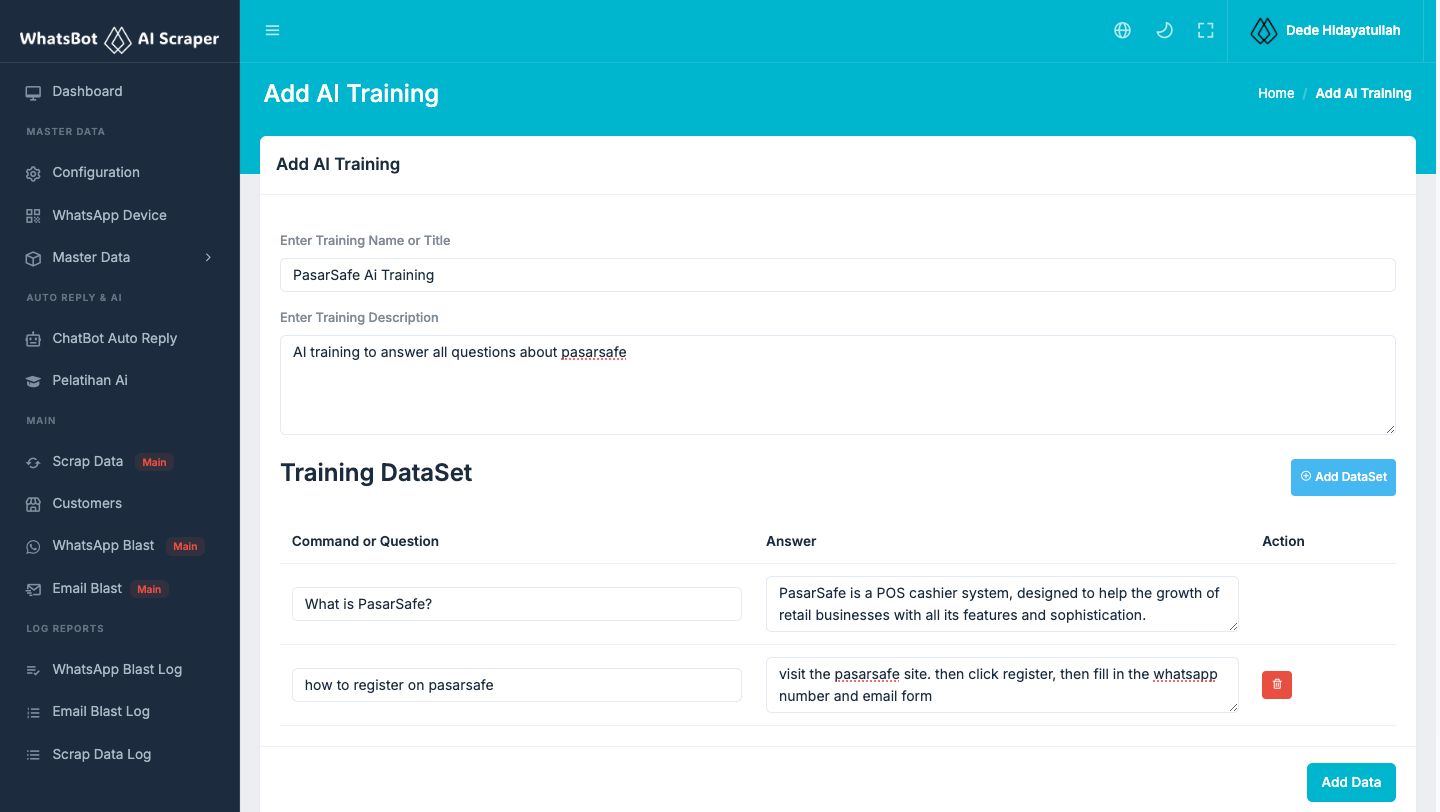 WhatsBot Ai Scraper is a multifunctional solution designed for various institutions and applications, combining WhatsApp technology with artificial intelligence (AI) that can be optimized through Fine-Tuning features. This system is suitable for use in a variety of environments, including: