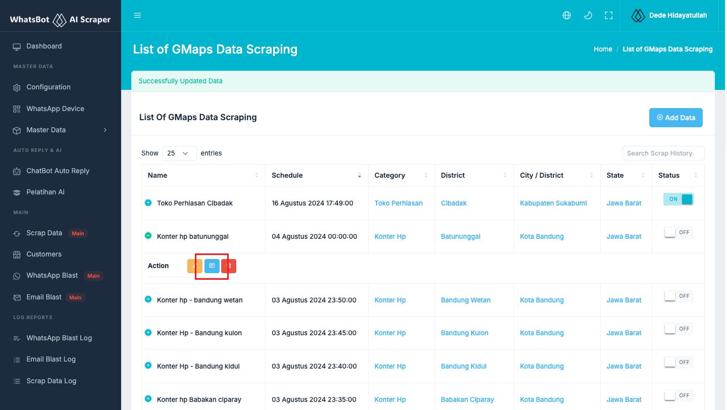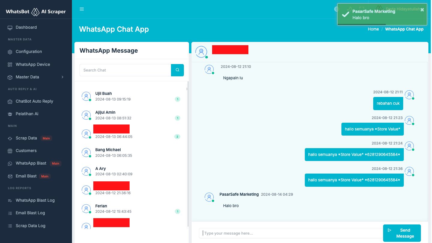 Streamline marketing with our tool: scrape Google Maps, manage customer data, and blast WhatsApp and Ai Auto reply