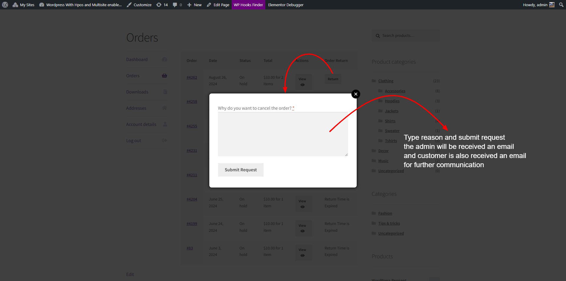 | Tags | woocommerce return, order cancel, order return, return request, cancel request, woo order cancel, woo return req, order refund, return policy, cancel policy |