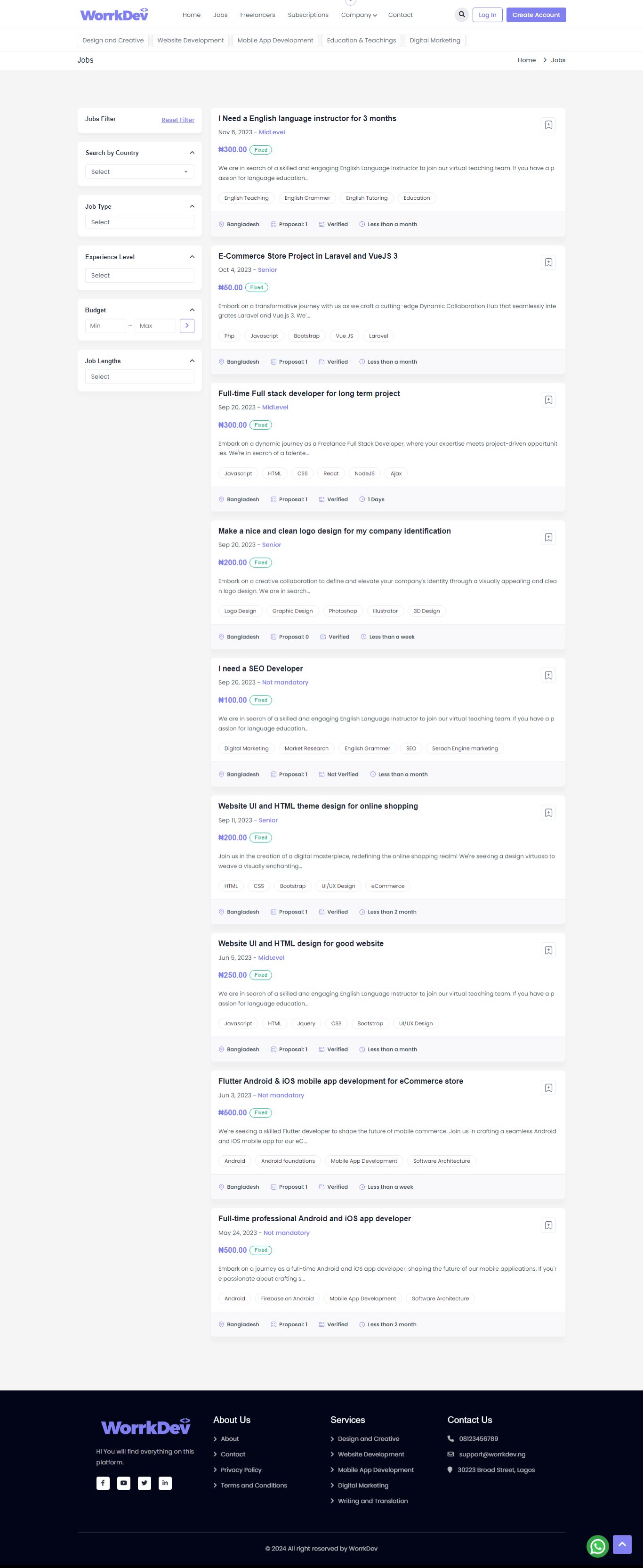 Welcome to WorrkDev v2.0 Freelancer PHP Script, Your all-in-one solution for creating a vibrant and efficient freelance marketplace. Built with the robust Laravel framework, WorrkDev is tailored to meet the needs of both freelancers and clients, offering a smooth and effective experience for everyone. Whether you're looking to develop a comprehensive freelance platform or a specialized job-posting site, WorrkDev is the ideal choice.