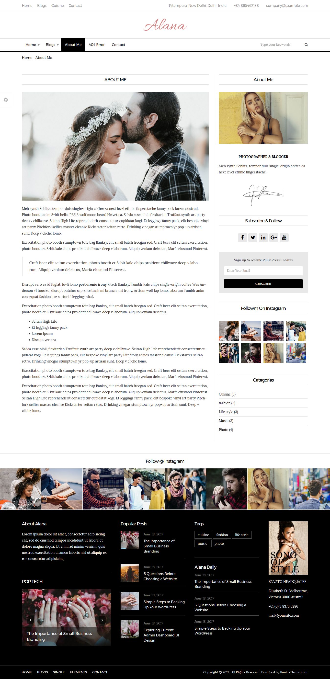 | Tags | clean, simple, creative, news, personal, instagram, blog, magazine, blogger |