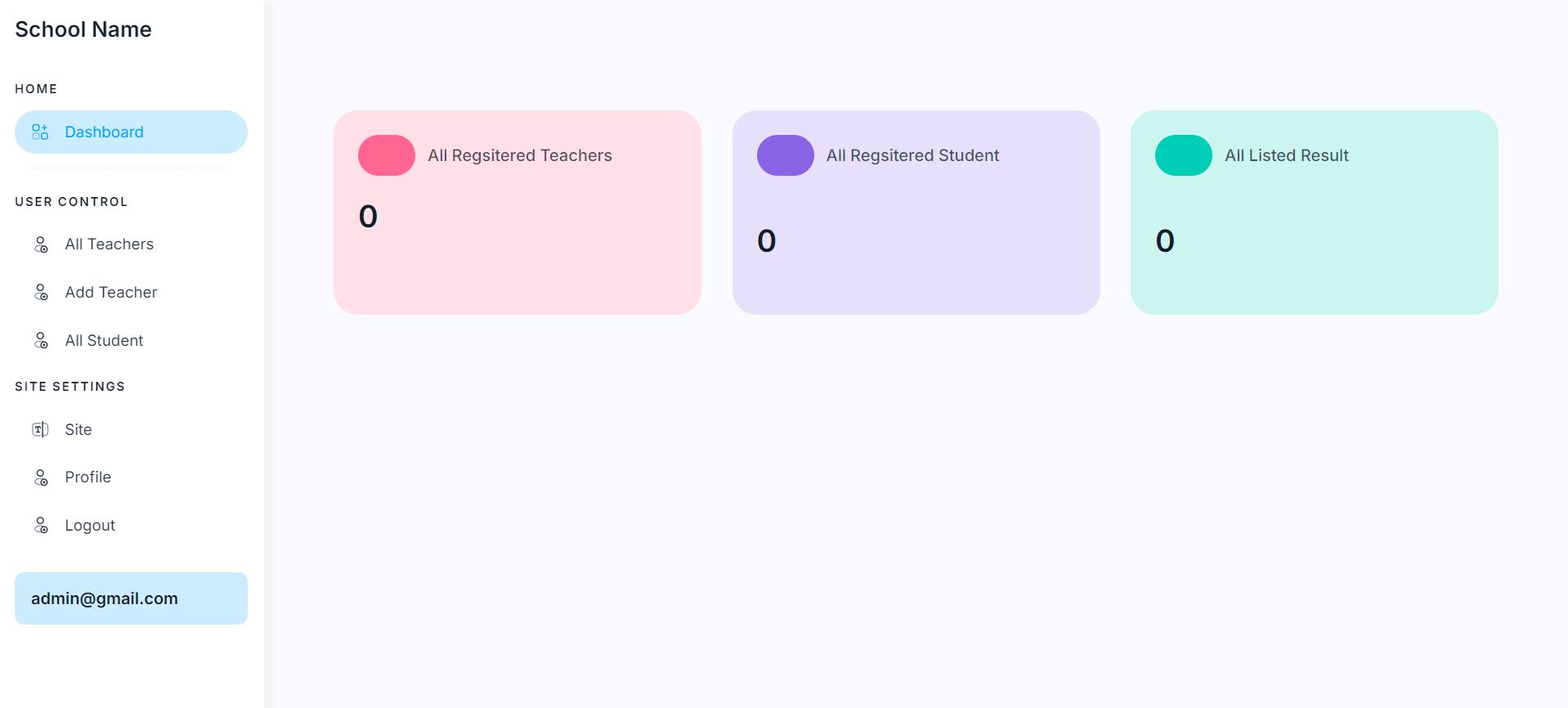 - Result Management: Teachers can enter and update student academic results across subjects and classes.