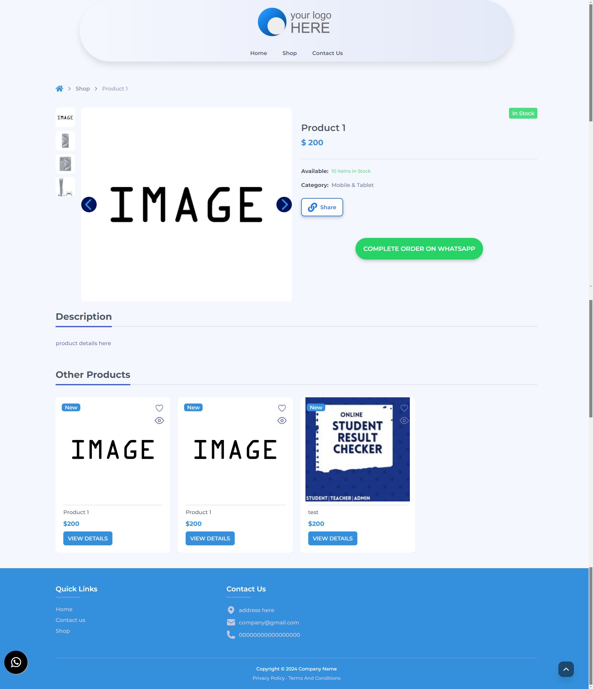 Whether you're looking to build a product showcase or a fully functional eCommerce store, FlexiShop CMS offers the flexibility and tools you need to succeed. With seamless WhatsApp integration and intuitive product management features, you can provide your customers with an exceptional shopping journey from start to finish.