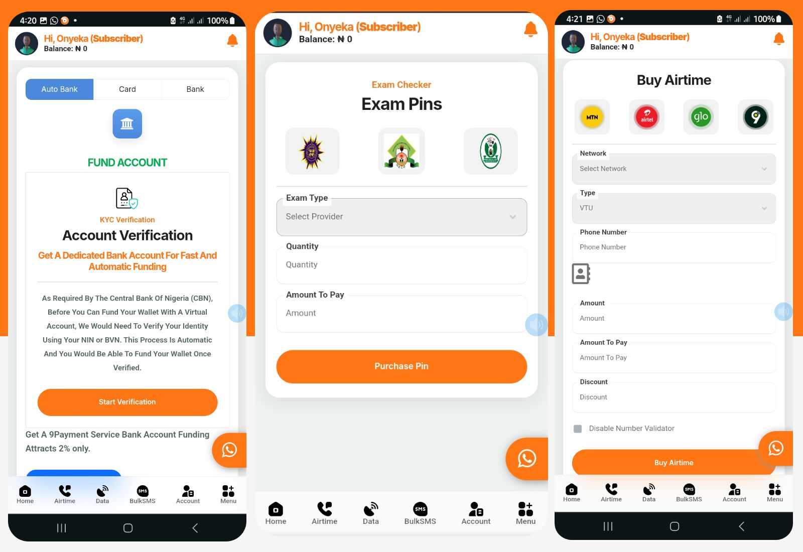 Are you interested in starting a VTU business for instant recharge and billing? The new version features a redesigned interface with multiple network providers and includes 9Payment Service Bank (Auto Bank and Virtual Account System).