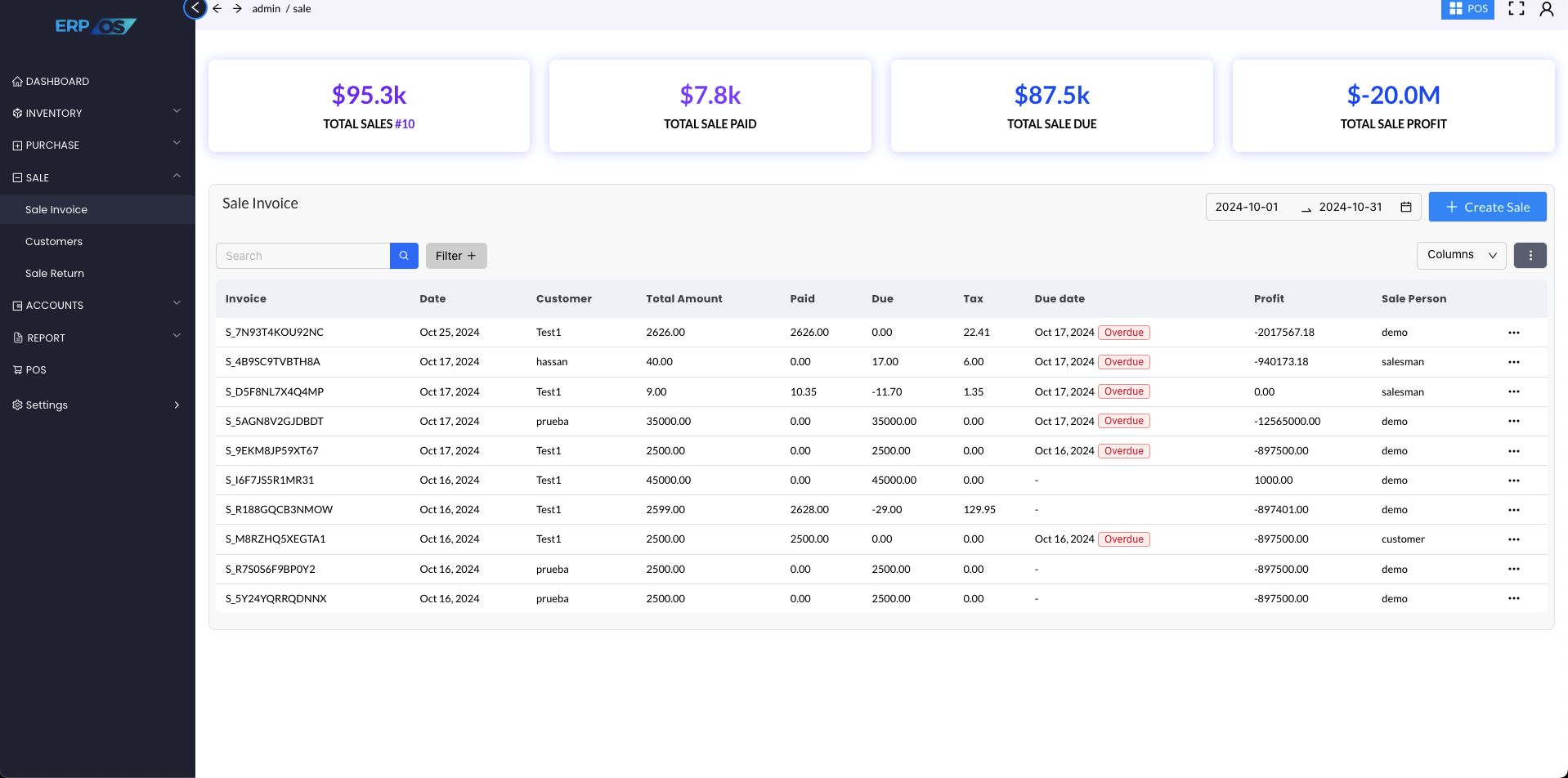 - View datewise total sale invoice, amount, due, paid, and profit