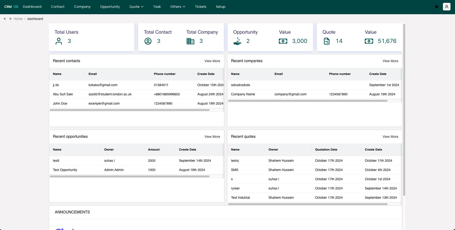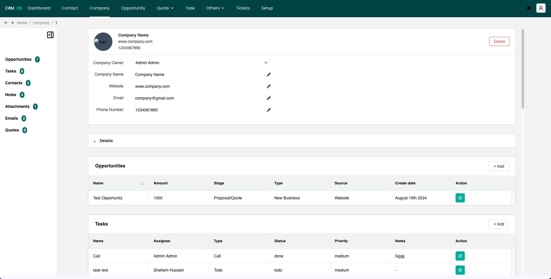 Introducing CRM PRO – the all-in-one Laravel and React.js-based customer relationship management software that revolutionizes your sales and customer management needs. From Company and Contact management to Opportunity and Quote management, our state-of-the-art CRM solution streamlines your daily operations. Whether you run a small business or a large corporation, our software is designed to help you efficiently manage core CRM tasks like companies, contacts, quotes, customer interactions, task management, and internal employee management.