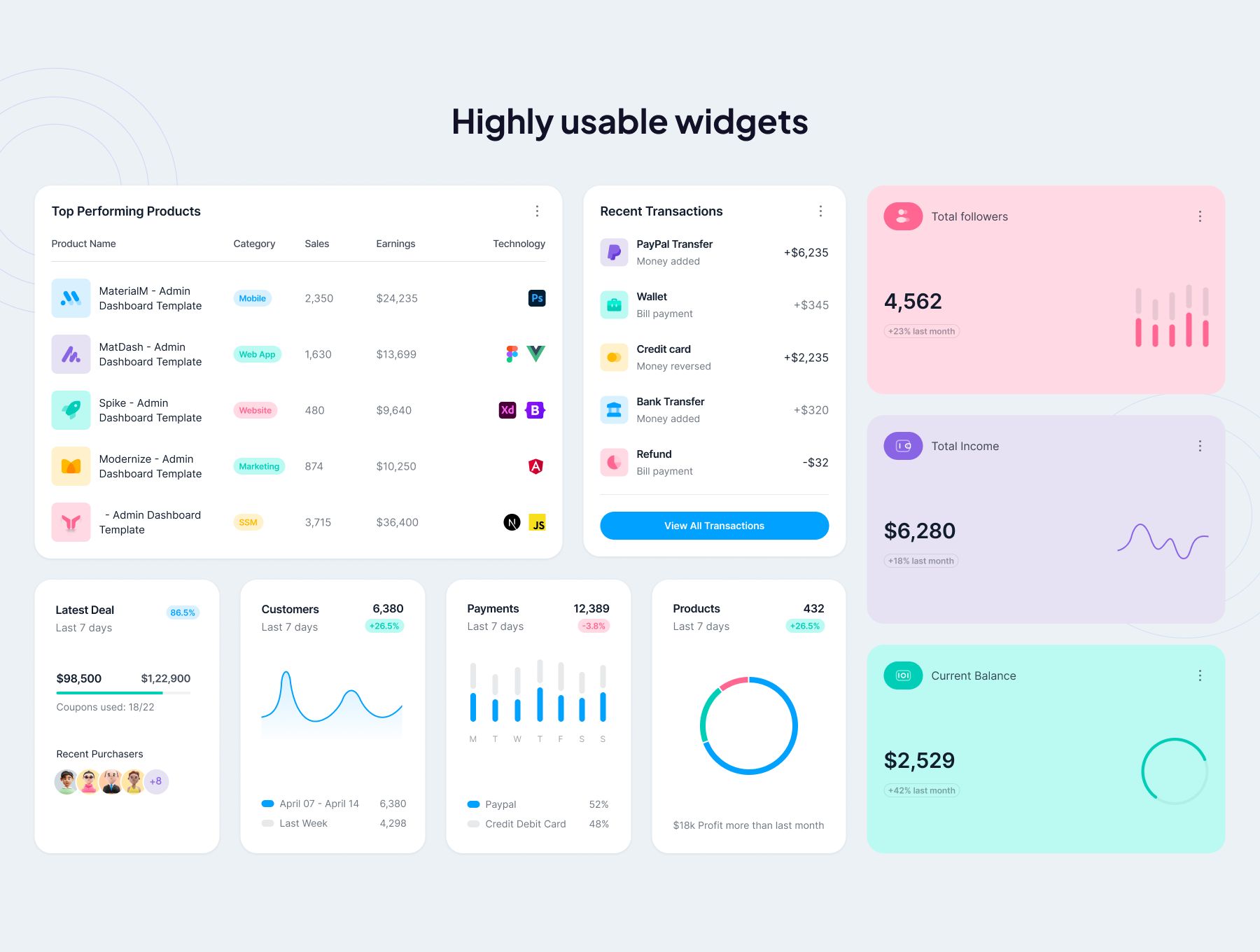 MaterialM boasts a comprehensive toolkit featuring over 65-page templates and 45 UI components, catering to a wide range of project needs. From rich application designs like calendars and chat functionalities to stunning dashboards and essential widgets, this template simplifies the development process without sacrificing creative freedom.