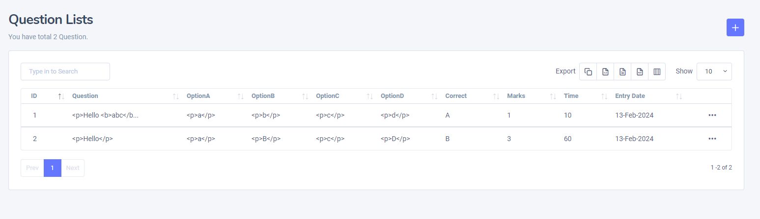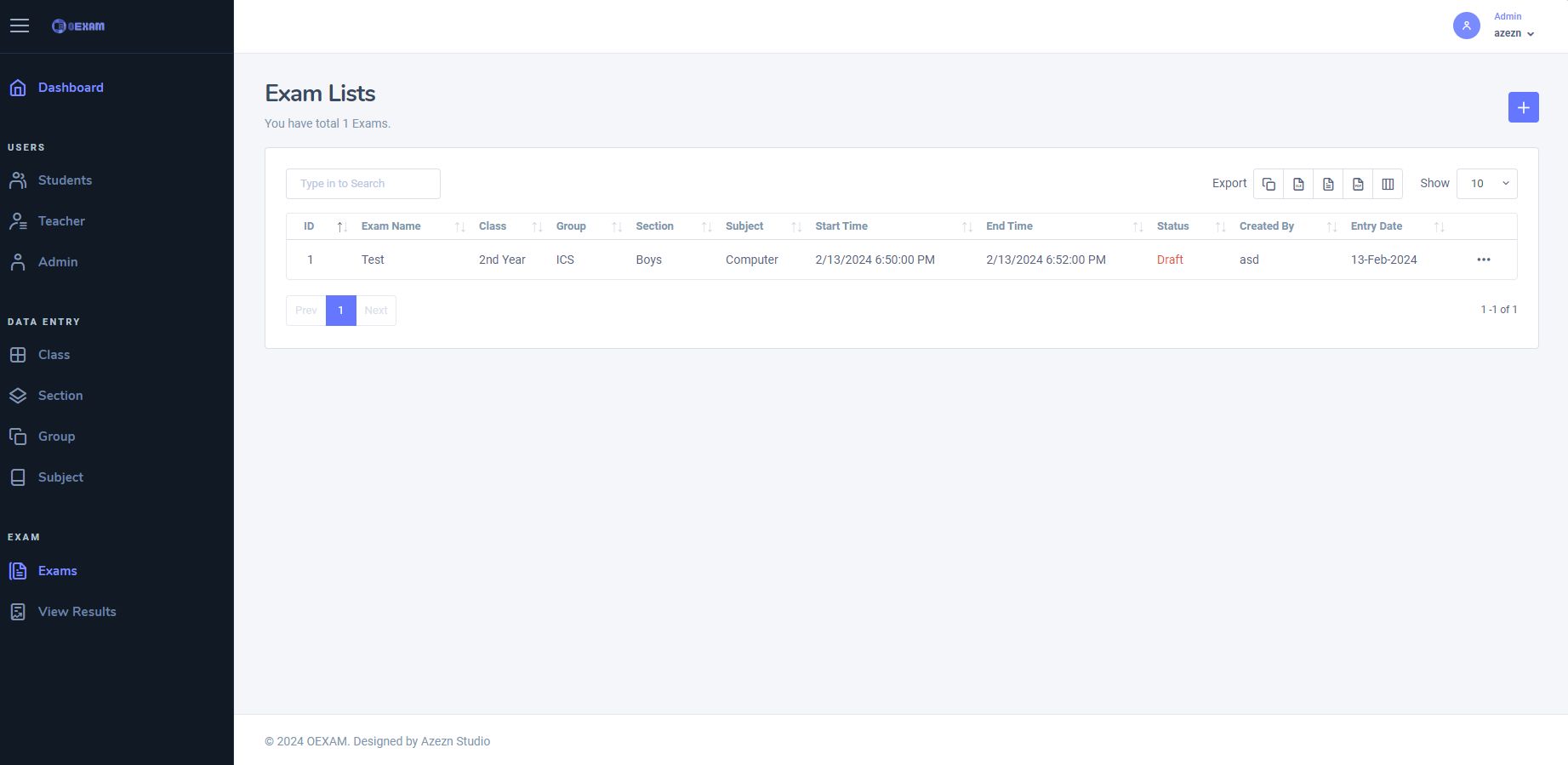 - Exam Creation: Flexible exam scheduling with support for custom settings like time limits.