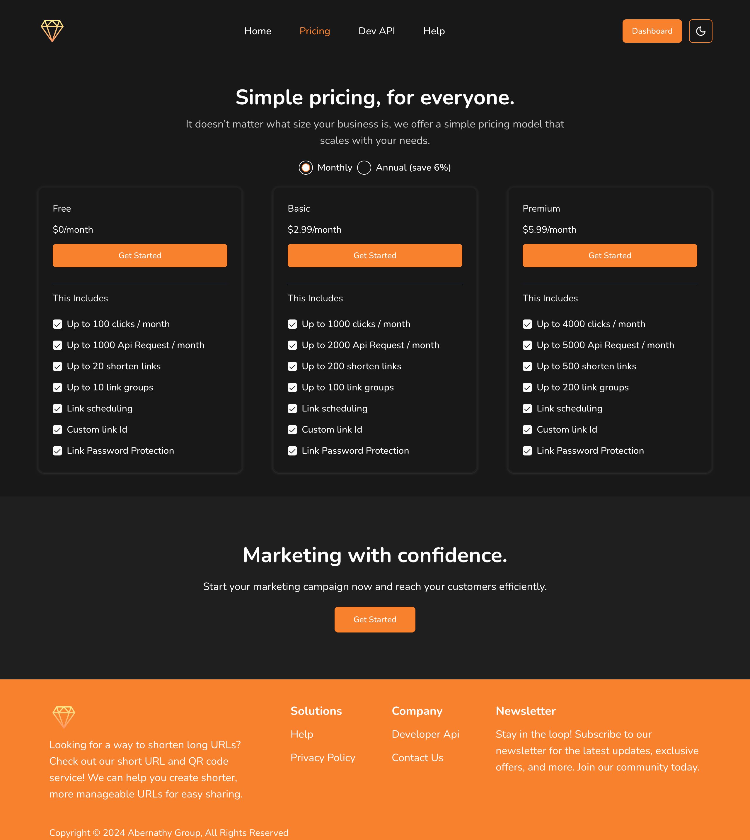 - Subscription Plans: The platform supports multiple subscription plans with different limits on clicks, API requests, and link creation options.