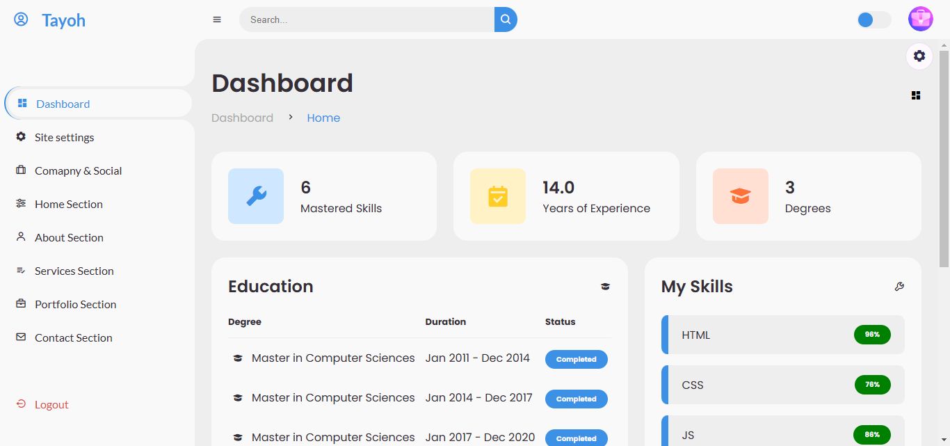 Portfolico is a dynamic PHP portfolio script designed to help professionals showcase their work through an elegant and customizable online presence. This comprehensive solution features a robust MySQL database backend and an intuitive admin panel that allows seamless content management, including the ability to edit information and customize theme colors to match your brand identity.