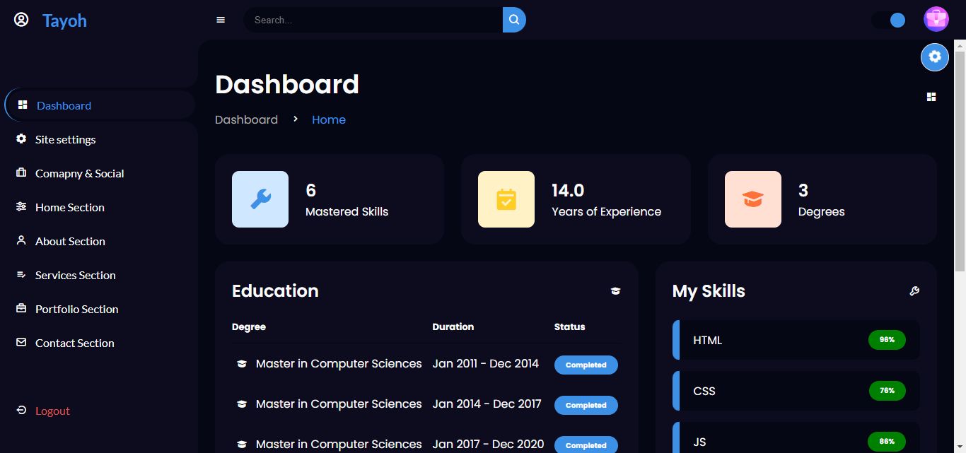 Portfolico is a php personal portfolio script with admin panel and MySQL database