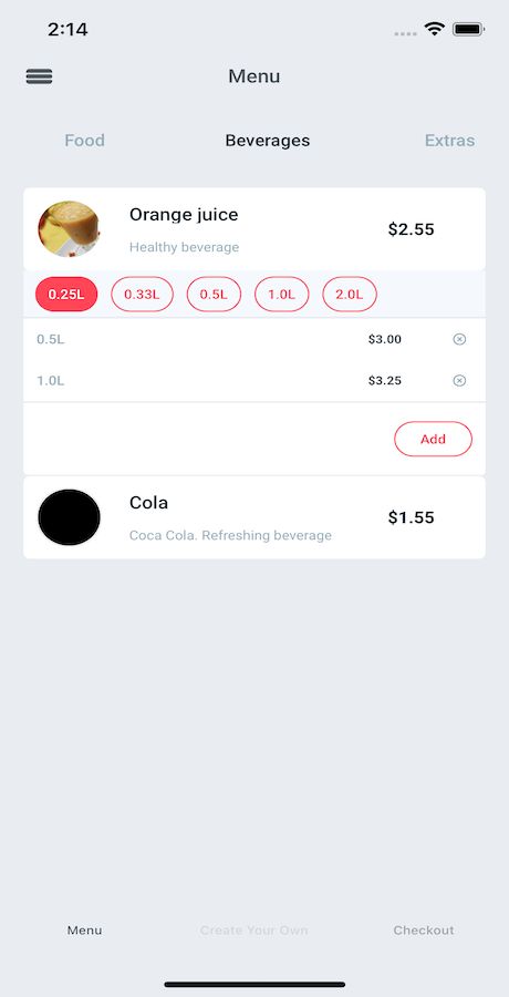 - Ingredient list with individual pricing for each add-on