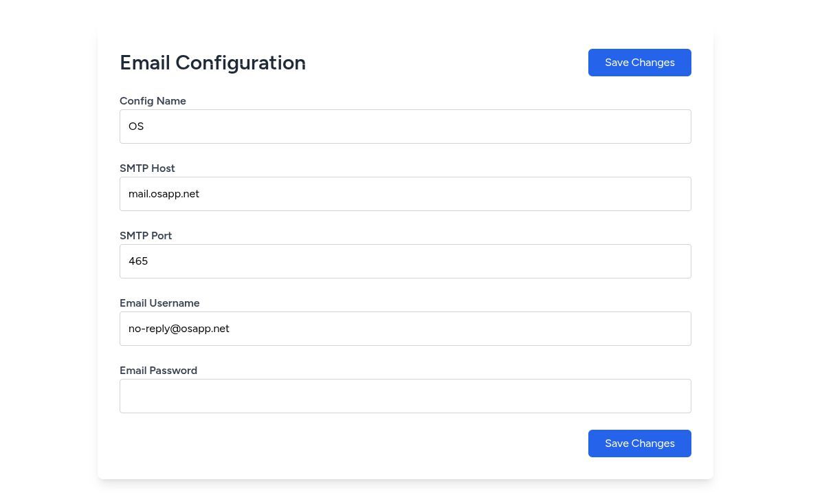 - Email Configuration: Set up SMTP server details for efficient email communication.