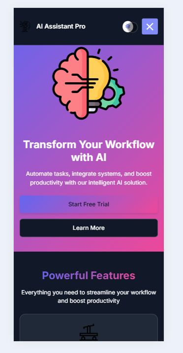 A fully responsive AI startup landing page built with HTML, CSS, and JavaScript. Includes dark/li...