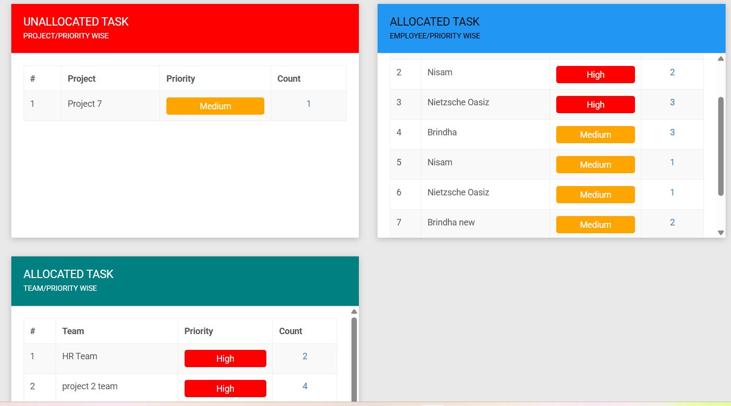 b. Priority wise Task (link to Task Page)