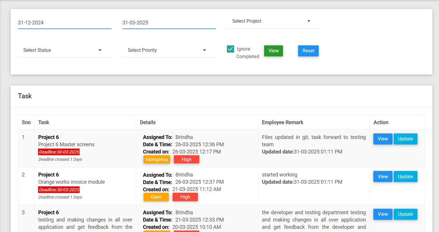 d. Employee wise Task (link to Task Page)