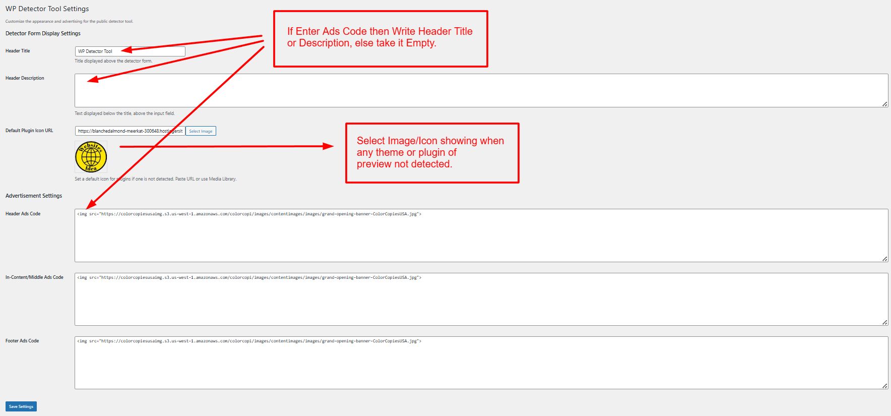 - Header Title:Â Set the main title for your public detector tool.