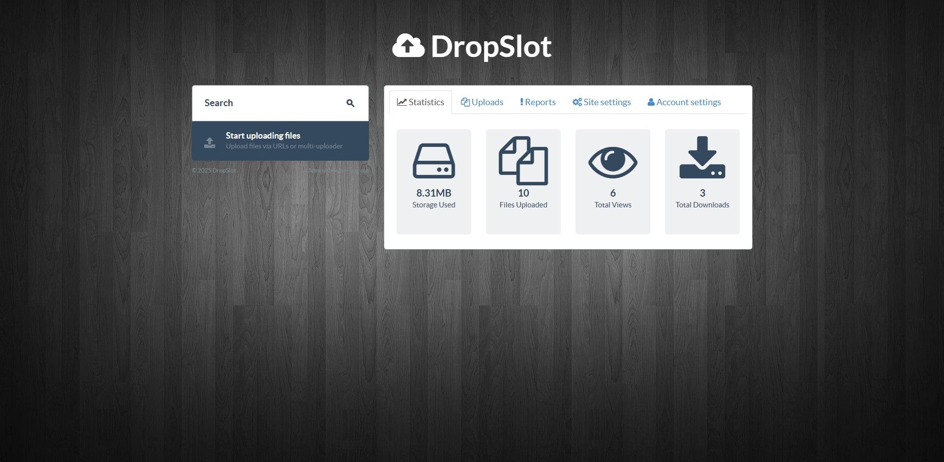 DropSlot is a file sharing application built in PHP that allows users to upload files, share them via URLs, and manage their fileDropSlot - File Sharing Platform